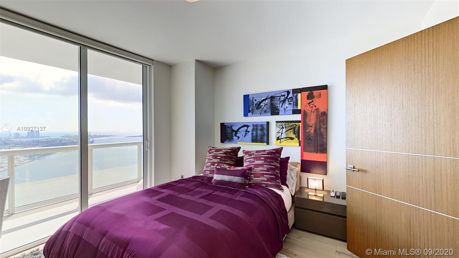 This stunningly upgraded residence features direct unobstructed views of Biscayne Bay and Miami Beach that will greet you as soon as you step in! A masterpiece of design with attention to details, this unit has spectacular views of Biscayne Bay and the City from every room! Soaring 12ft ceilings throughout this rarely available 08 line. Pristine conditions, offering over 1,300sqft. Quick access to/from I-95, strategic location. Walking distance from City Center, restaurants and movie theater. Must see. 5-star resort amenities. (den was converted into a full bedroom/media room).