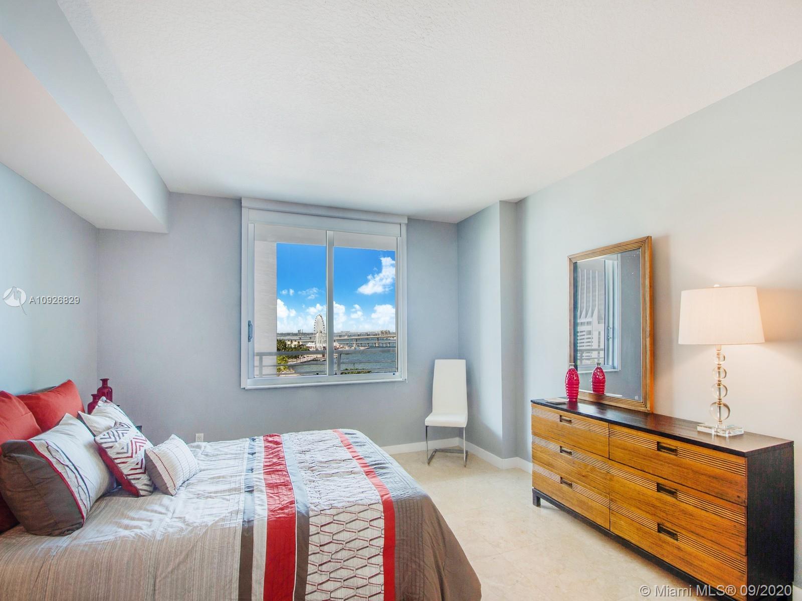 Welcome to Miami. Home to international business, Miami Beach, nightlife and the Florida Keys. This 846 square-foot one bedroom one bath home has stunning views of Biscayne Bay. Watch the cruise ships enter and leave port; watch dolphins playing; watch amazing fireworks for New Year’s Eve and Fourth of July all from the comfort of your own home. This contemporary apartment boosts 24“ x 24“ marble tiles throughout, 8 foot ceilings, blackout shades in the bedroom, Whirlpool appliances, whirlpool washer and dryer and impact resistant sliding doors and window. Luxurious lobby with 24 hour door attendants , two pools, hot tub, two gyms and a sauna complete your new retreat!