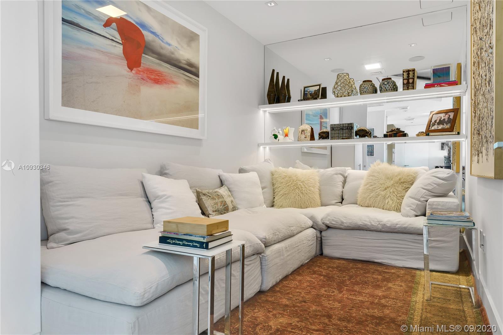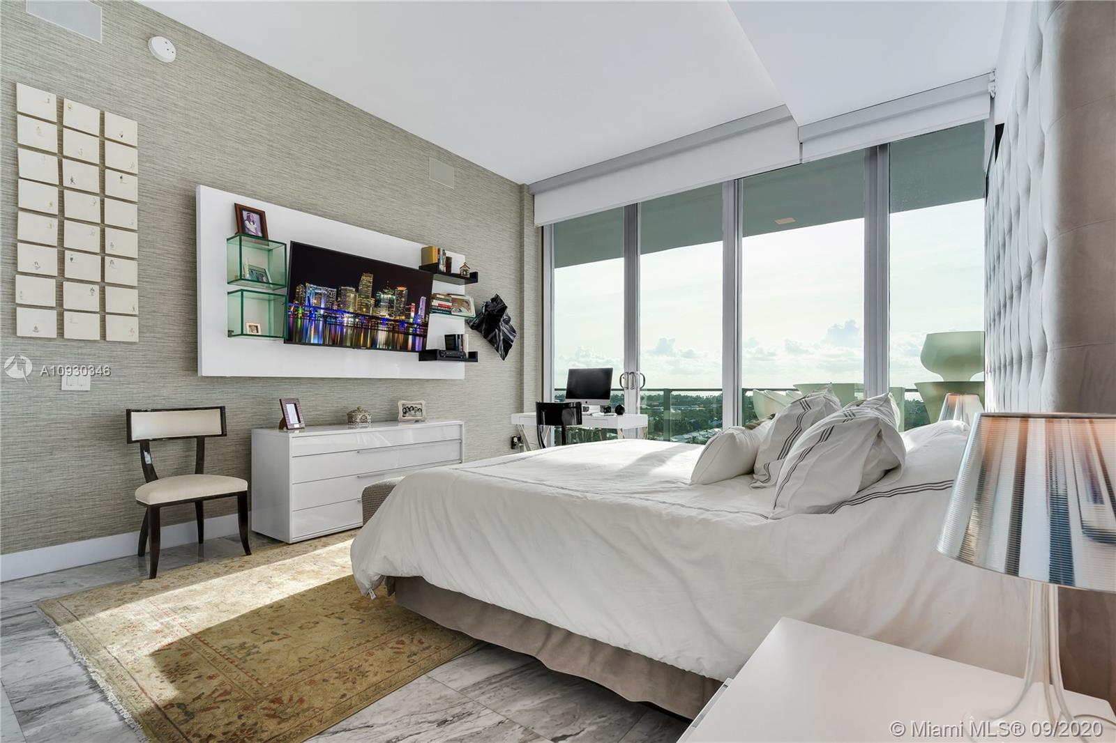 Immaculate Lower PH at exclusive beachfront Oceana in Key Biscayne. Private elevator opens to one-of-a-kind 3BR + Staff, 4 full BA, 1883 sf unit w/ 11’ft ceilings, high impact windows & 48x48 Carrara marble floors & integrated speakers throughout. Breathtaking views of Biscayne Bay & Miami Skyline! Unit is fully automatized w/ Control4. Kitchen features long island w/ Miele appl. & wine cooler. Den boasts drop down TV. Master BR features two walk-in closets, Master Bath w/ natural light & built-in TV in mirror. Remodeled private lobby & glass door that opens to unit, new A/C, linear A/C ducts, tinted film on all windows. Oceana offers grand pool & lap pool, al-fresco restaurant, tennis court, gym & spa, kids play room, party & media rooms, putting green & volleyball on 500 ft private beach