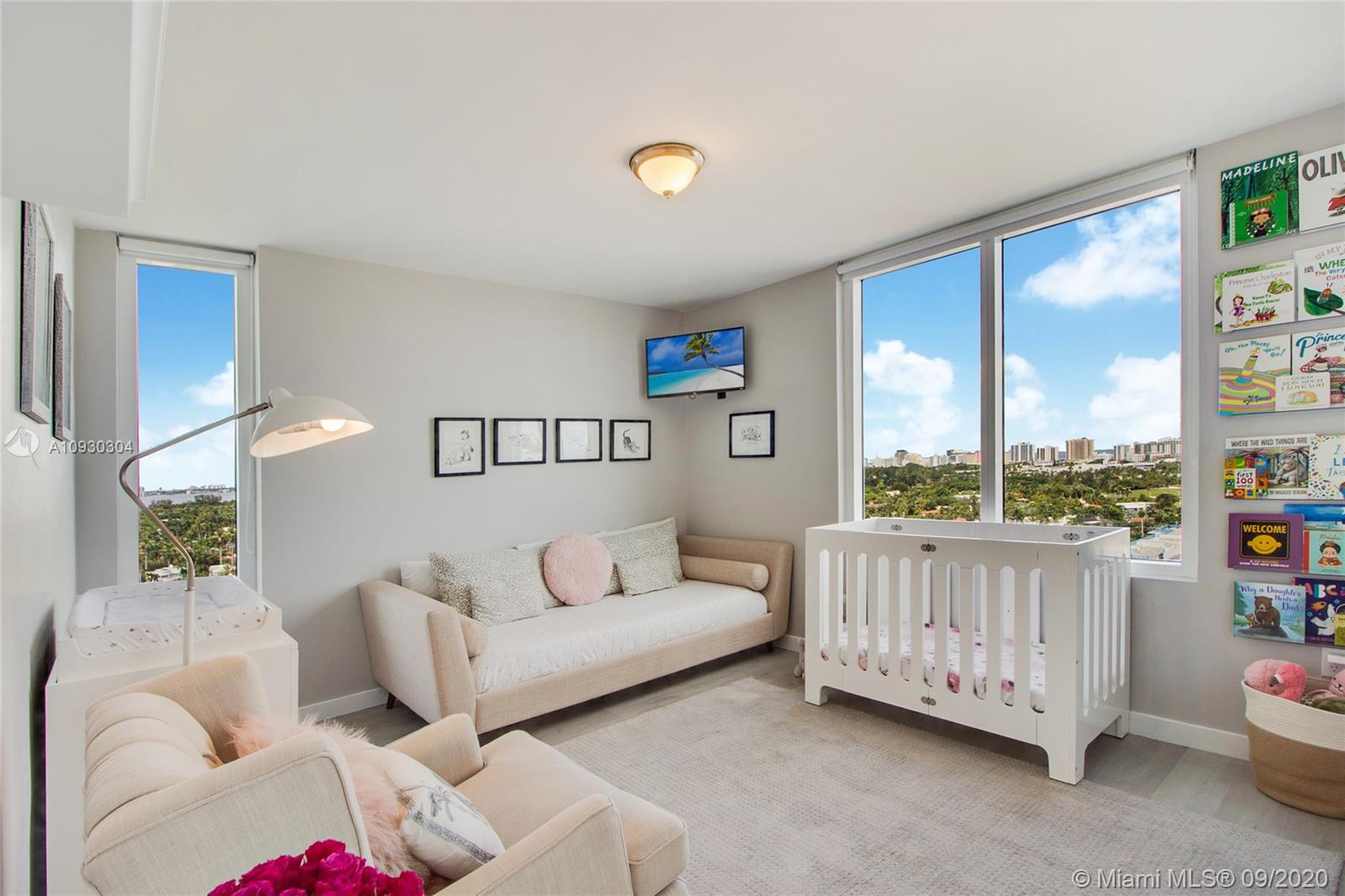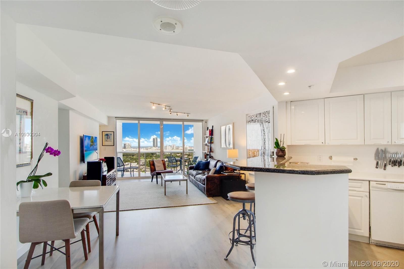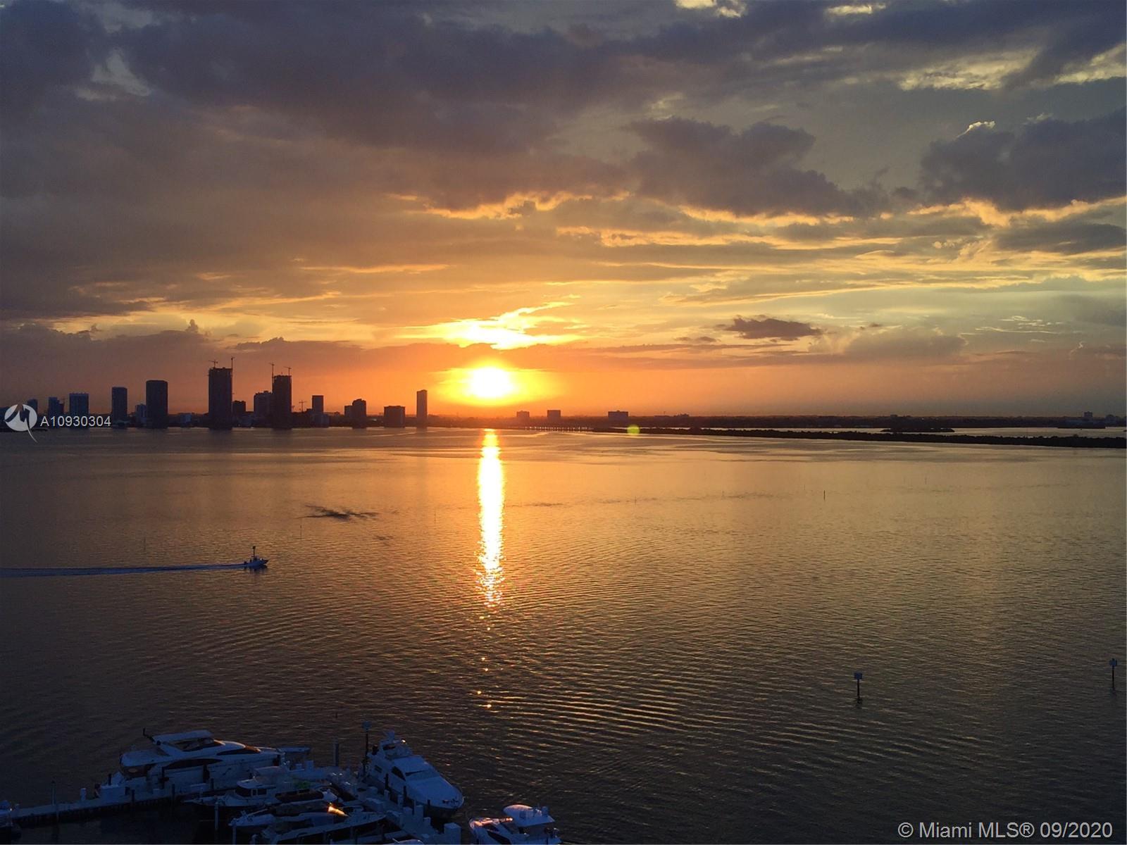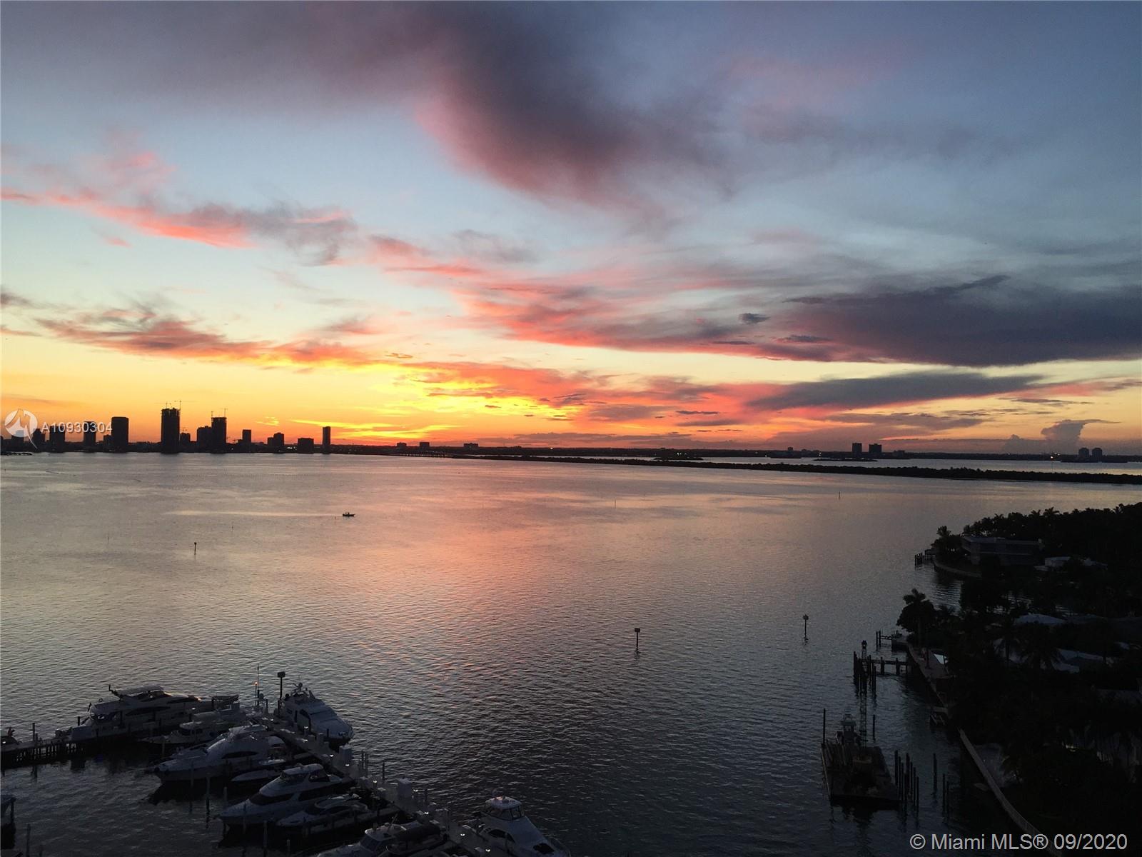 Enjoy unobstructed sunrise and sunset island views from this NE corner unit perched on a high floor with 2 private balconies. Ultimate serenity is yours with hurricane impact sliding glass doors and windows (unique for this building) providing noise reduction and safety from storms. Situated in the heart of Sunset Harbour, this upgraded unit provides its owner with a true walkable neighborhood full of locally owned boutique shops, restaurants, and fitness clubs as well as Fresh Market, Trader Joes, Publix markets. Water sports, yacht club, and boating are at your fingertips from this full service building with 24 hour concierge, valet, security, gym, sauna, club room and 2 pools.