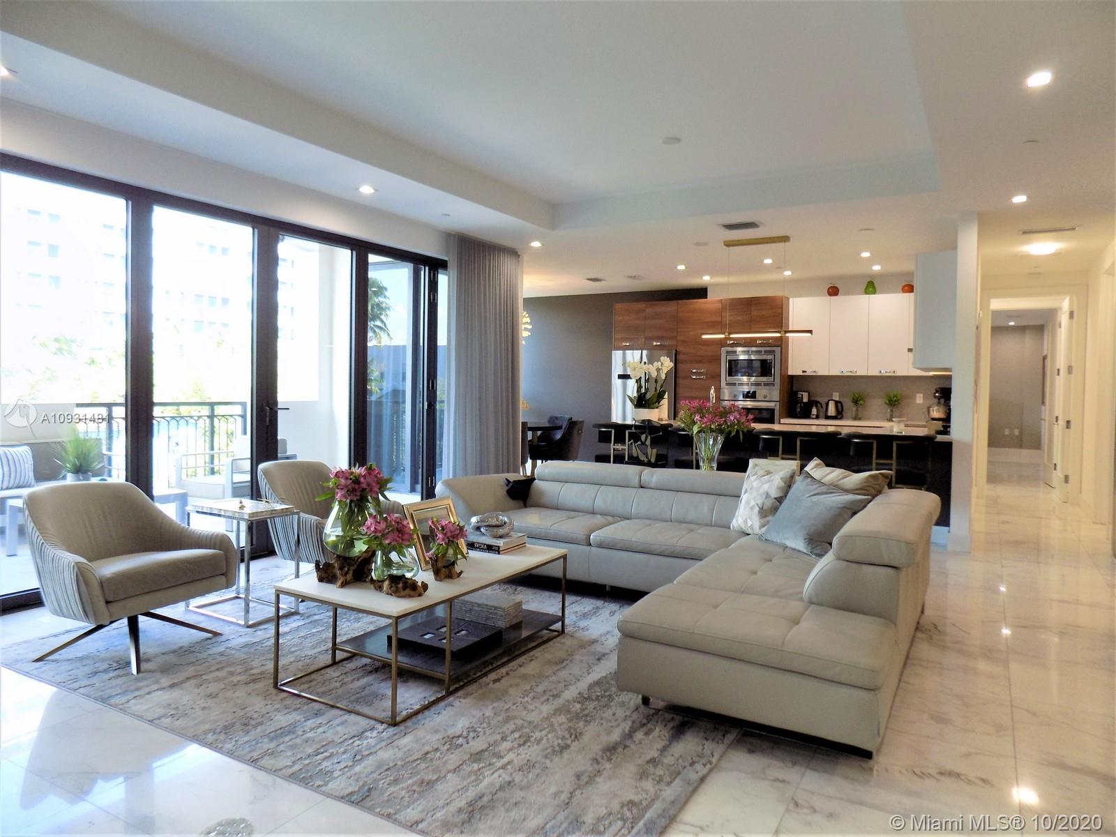 Spectacular designer completed 2 bedroom 2.5 bathrooms, den unit in the exclusive Biltmore Parc. Gorgeous views of "The City Beautiful" from every terrace and bedroom window over looking lush green avenues. Grandiose main terrace with nana bi-folding walls integrating the airy outdoor space with the open living and dining areas. Owners spared no expense with the finishes of this unit, carefully selected by a team of designers. Beautiful built-ins and walk in closets, large laundry room, grand den that can be converted to a third bedroom or an at home office combined with entertainment room. Walking distance to Miracle miles and Downtown Gables. A must see!