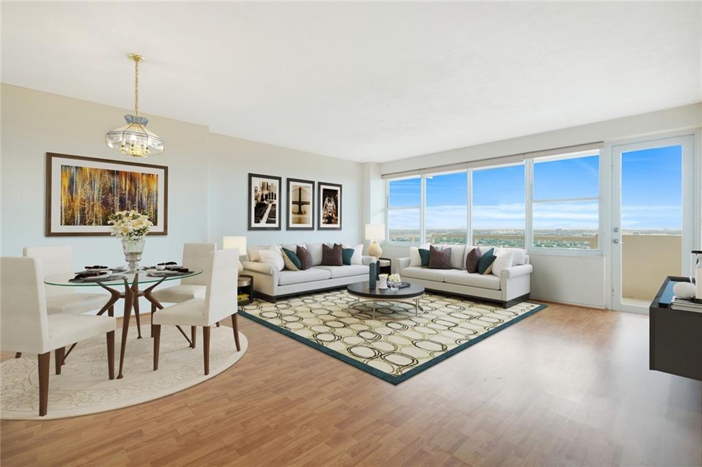 Enjoy breathtaking views overlooking the Intracoastal, Ocean, and Galt Ocean Mile. This well-kept penthouse apartment features hurricane impact windows and central air conditioning. Professionally managed building with great amenities. Walk to the ocean, shopping, restaurants, and private clubhouse on Intracoastal. Association states one Buyer must be 55, no rentals or pets. You will love living here.