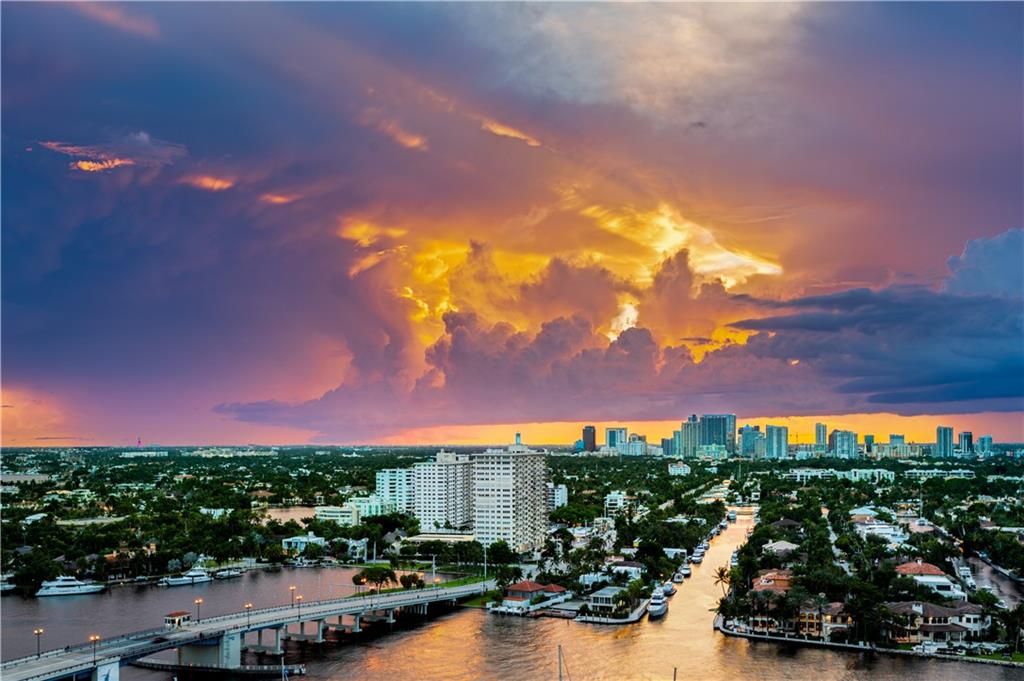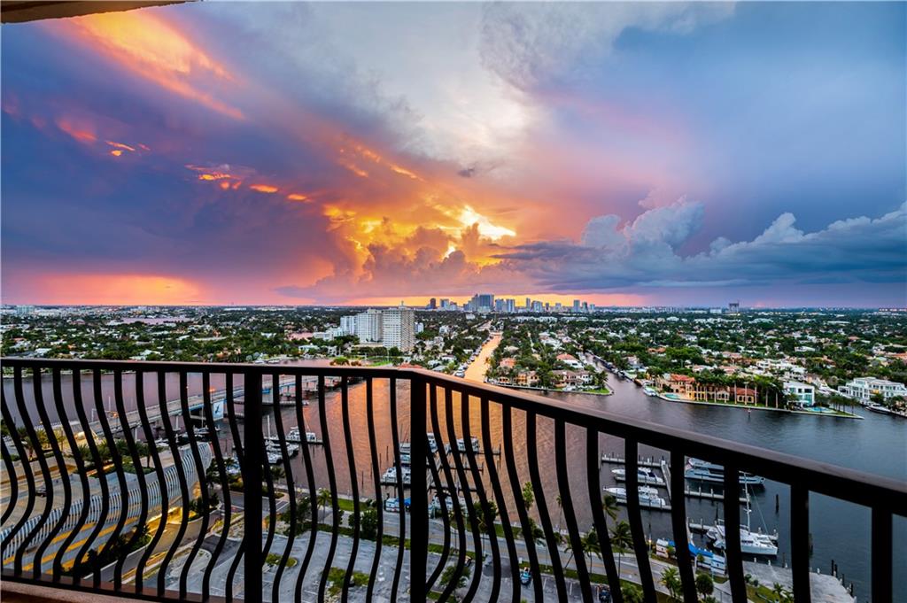 Do not miss this rarely available corner suite at Jackson Tower with breathtaking 180 degrees views of the ocean, Intracoastal and the Las Olas isles. The downtown Fort Lauderdale skyline glitters to the west. The wide, wrap-around balcony provides unobstructed views of sunsets and the boat parade below. Features include a private elevator lobby, a spacious and open plan, generous closets, a well appointed kitchen and a brand new A/C system. TWO GARAGE SPACES are included. Jackson Tower is a full-service building with 24-hour security a gym, heated pool, outdoor grill area, billiards and a club house with a bar for entertaining your guests. Fort Lauderdale's beach is a few hundred feet away. Downtown, The Brightline Train, Las Olas shops and Fort Lauderdale's airport are only minutes away.