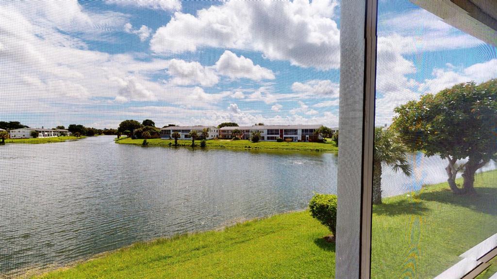 Best lake view in Century Village, a 55+ community! Beautifully renovated two bedroom, one and one-half bath condo. You will be impressed as soon as you enter this condo with large diagonal set tiles consistent through the living space. Fully furnished and turnkey, everything included, bring your clothes and toothbrush only! Please take a look at our 3D Matterport Virtual Tour so you can see every squarefoot of the unit before scheduling your showing appointment. Just click photos and then Virtual Tour and click the link. Or you can copy and paste https://my.matterport.com/show/?m=8Mz4cZ3norS&brand=0