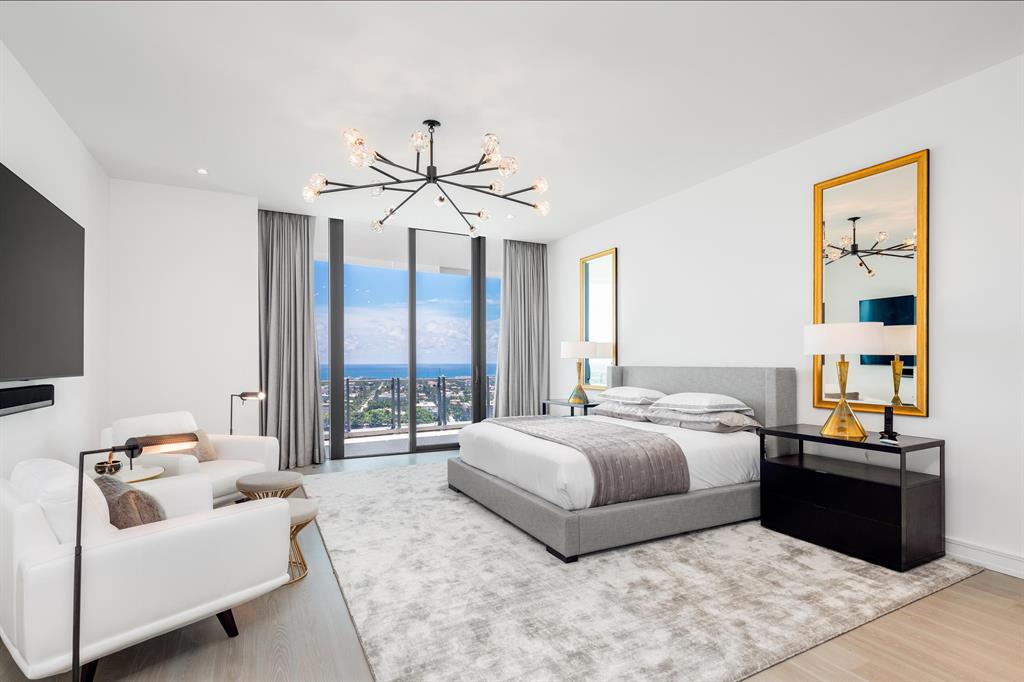 The most spectacular condominium available at The Bristol and arguably throughout South Florida. This Magnificent home in the sky has the most breathtaking panoramic ocean and intracoastal views. The entire residence facing East, North, and West has all floor-to-ceiling glass, including dramatic 11-ft. sliders and windows. This home was designed as a 4-bed/5.1-bath with an office and is designer decorated and offered fully furnished. Impressive 48'' marble flooring in the main living areas and gorgeous wood floors in the bedrooms. Spacious dual master closets and dual master baths with Dolomiti marble and stunning Italian Fantini fixtures. Beautiful open kitchen with Gaggenau gas stovetop, Calcutta countertops, & Snaidero cabinetry.