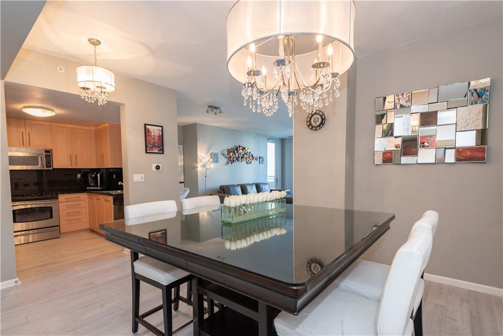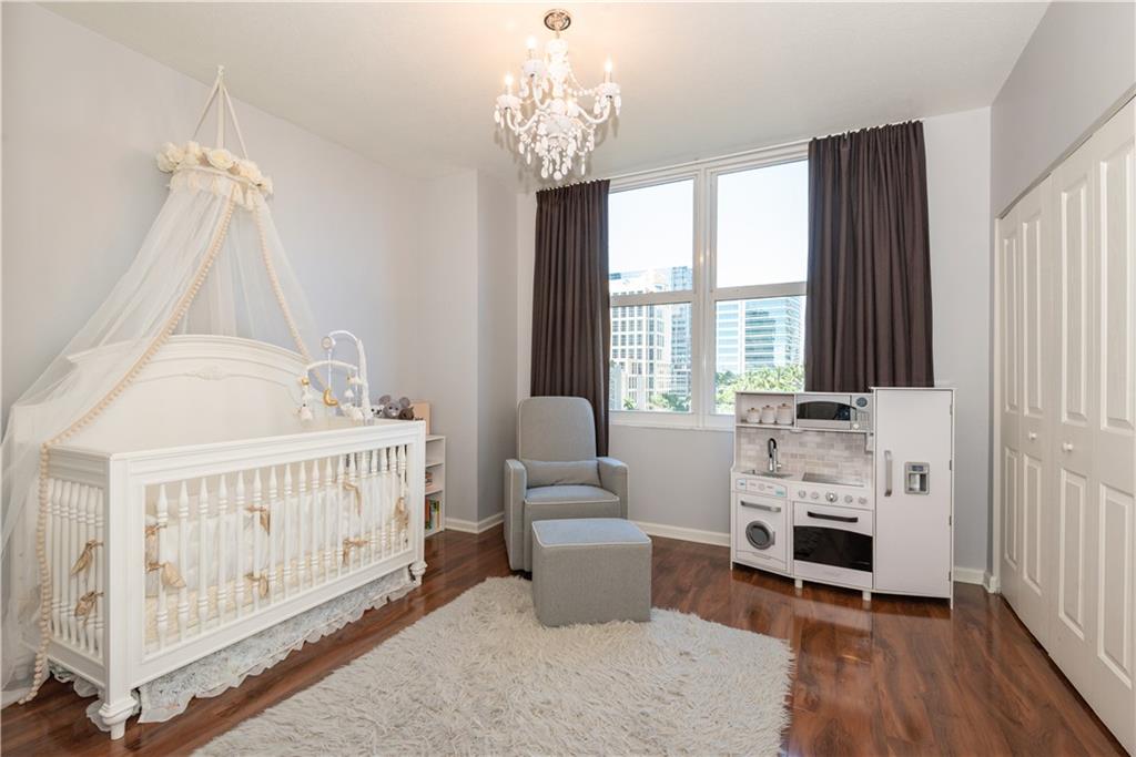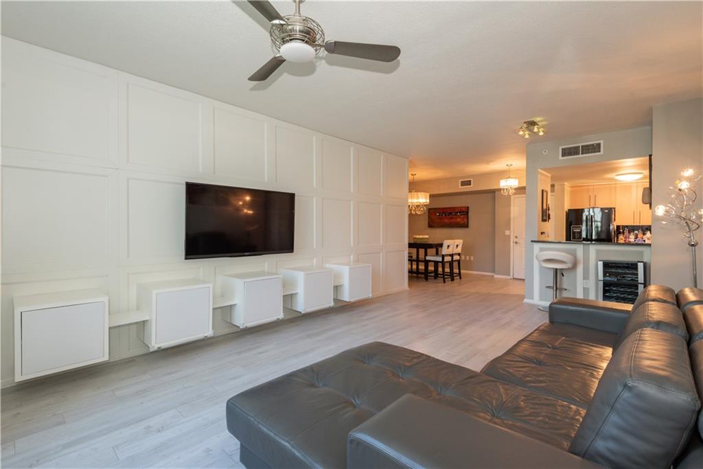 Sit back and watch the boats go by from the private balcony of this 2 bedroom / 2 bathroom residence facing directly north overlooking the New River and zen garden. This home features laminate flooring throughout including both the owner’s suite & guest bedroom/home office. Both bathrooms have been updated with a neutral tile backsplash. The dining area features a clean, white stone accent wall and the living room area features a modern, box design, wood panel accent wall. The kitchen is outfitted with stone countertops & backsplash and modern Italian shaker style cabinetry. Balcony floor is fully tiled. Second bedroom is perfect for a spacious guest room, nursery or home office.