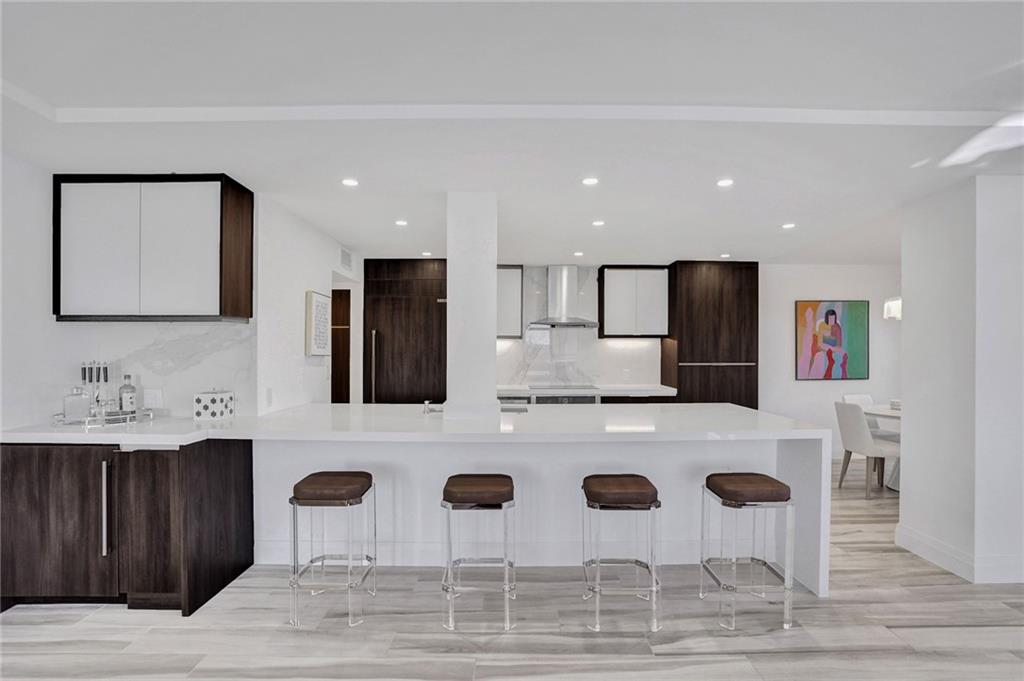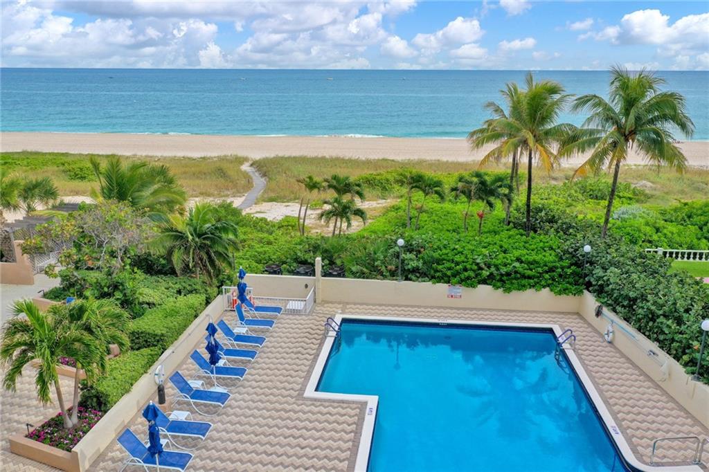 The ultimate in Beach Living. Once you enter this exceptional condo from the semi-private elevator, you will fall in love with it. Amazing direct Ocean Views and natural light in this desirable Southeast corner unit. High-end designer finishes throughout compliment the open layout of this residence. The Chef's kitchen features custom Cabinets, Jenn Air stainless steel appliances, Quartz counters and a breakfast area overlooking the ocean. The large master suite offers stunning sunset views. The bathrooms are appointed with exquisite Custom cabinetry, Quartz counters and tile work. Wide plank porcelain tile floors flow through the unit. Den/study used as 3rd bedroom. Enjoy Resort style amenities like the heated pool w/outdoor kitchen, gym, tennis & pickle ball, fire pits, putting green.