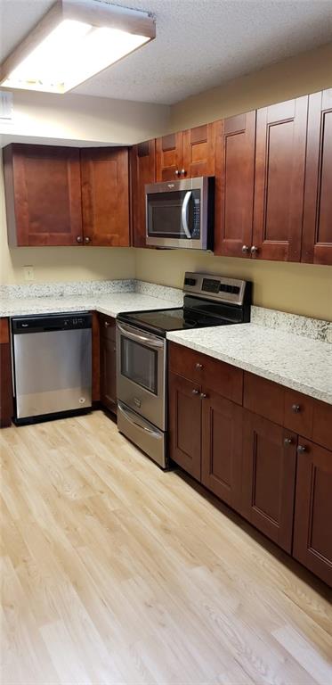 Fully Remodeled 3 bedroom / 2 bathroom corner unit with no neighbors on either side. You are welcomed home by vaulted ceilings in the living/dining area when you enter followed by a balcony . This floor plan offers a split bedroom floor plan with the master bedroom and two other bedrooms separate from each other. Updated Bath rooms Laminated wood floors throughout in the kitchen and bedrooms. Large spacious kitchen offers wooden cabinetry, stainless steel appliances and opens to the living/dining area along with have space for an eat-in kitchen area. This unit has it's own washer and dryer. The community offers a workout facility, pool and playground area. Centrally located.