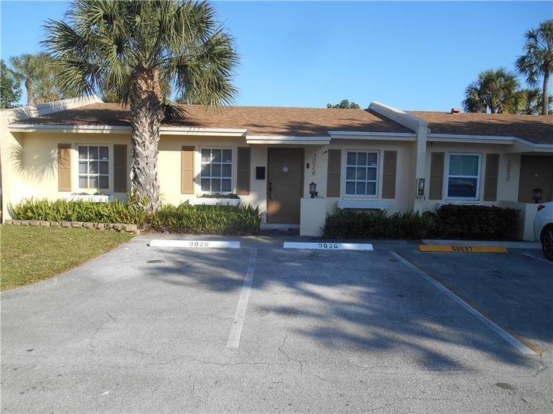 Rarely available - 3 Bedroom 1 Bath Villa located in Palm-Aire Village. Ready for homeowner or Investor, can rent upon closing. Good return on investment. No Age restrictions- Pets allowed- Spacious Villa, you will be surprised at the space when you enter this home. Kitchen has white kitchen cabinetry, eat in area, with pass thru to dining room. Large laundry room with full size washer/dryer, above cabinets for storage and Pantry. Master bedroom, guest Room, 3rd Bedroom is currently being used as a den with double pocket doors. Bath was remodeled last year, with custom vanity, new tub and designer tile. Tank-less water heater This villa feels like a home without all the maintenance, has large back yard -Open patio.