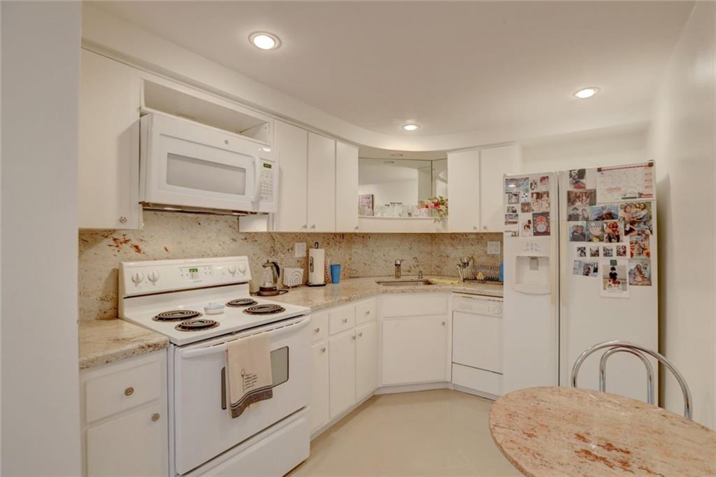 Nicely updated 2 bed, 2 bath with treetop view. New glass balconies being installed & building color will modernize to white with dockside blue trim. Seller pays assessment - you enjoy the benefits. MOVE-IN Ready with porcelain floors, granite kitchen counter tops. MODERN bathrooms, ceiling fans, walk-in MBR closet. Hurricane windows & door. UV blocking shades. Maintenance includes: Fiber optic cable, tv and internet, water, sewer and trash. One block to the beach, restaurants, grocery stores, art galleries and post office. All amenities including heated pool, gym, community room, Intracoastal clubhouse, bocce ball court, shuffleboard court, 24 hour manned security, secured lobby. North facing windows provide low electric bill. 55+ community. Cash only. NO RENTING