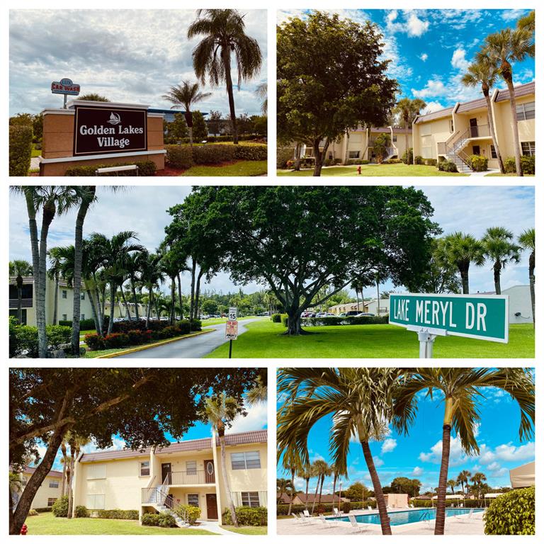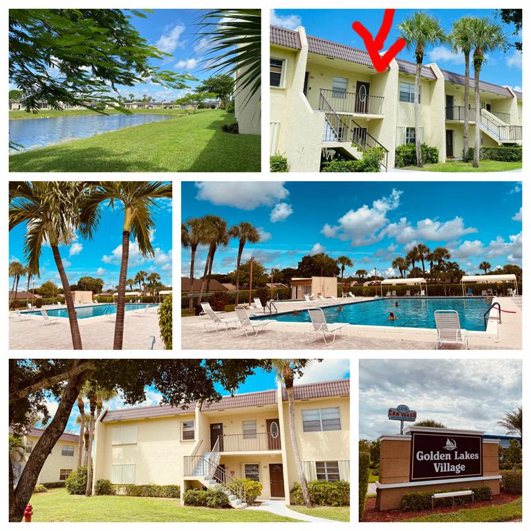 Spacious, totally renovated 2-Bedroom 2-Bath Convertible Condo located in the heart of WPB. Lake Meryl section of Golden Lakes Village is close to west gate & the Pool just steps away from the condo! The unit features NEW EVERYTHING! Tile & engineered hard wood floors throughout, Kitchen cabinets, appliances, granite countertops, hot water heater, walk-in closets & NEW 2-ton AC. Common laundry facilities. The huge 24L x 6W screened balcony has a large storage closet & the sunset & water views are just lovely! GLV is a 55+ Active Adult community w/Clubhouse, on-site Social Director, Cafe, Fitness ctr, Card rm, 24hr security & courtesy Bus. HOA covers water/sewer, cable, & bldg ins. PBI Intl is less than 5 miles away! Discover ''GOLD'' in Golden Lakes Village