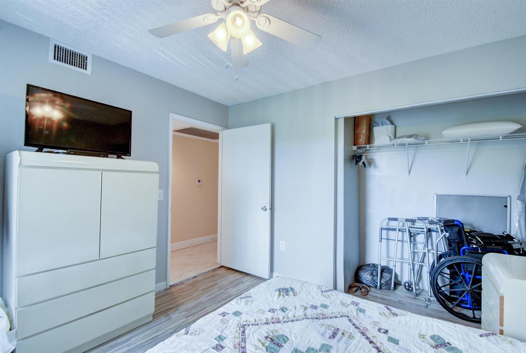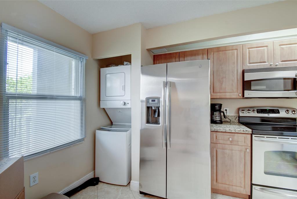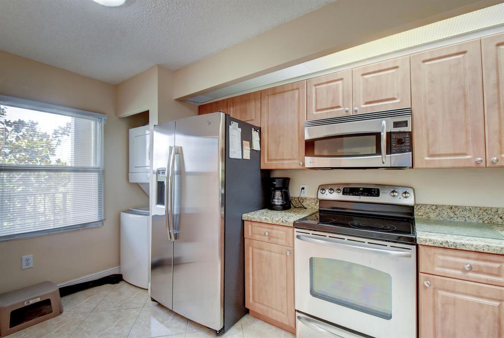VERY MOTIVATED SELLERS Beautiful 2/2 Unit, 55+ community, 3rd floor completely remodeled, 3rd floor unit next to the elevator and close to main entrance, accordion shutters, new electrical box, tile floor all through out, laminate in one bedroom, renovated kitchen, granite counter tops, stainless appliances, enclosed patio becomes extra living space, garden view, large walk-in closet, stackable washer and dryer, newer water tank, no furniture.HOA fee $446.70Parking # 39