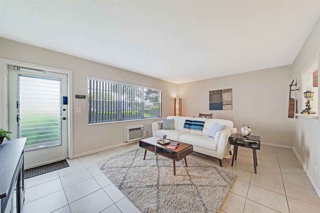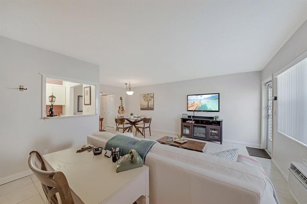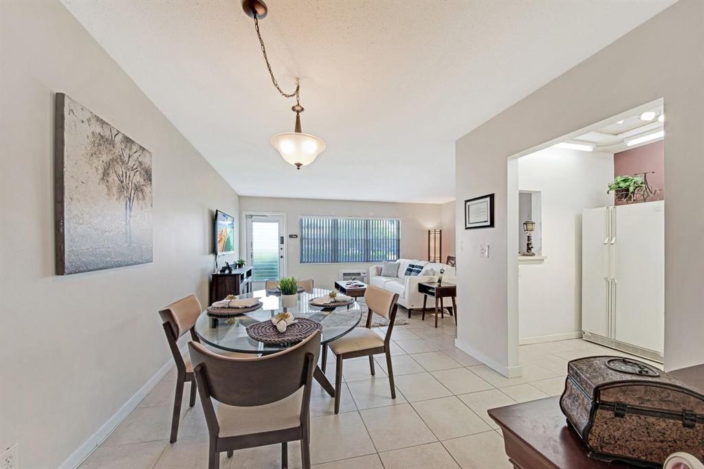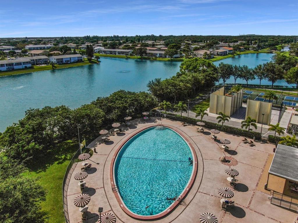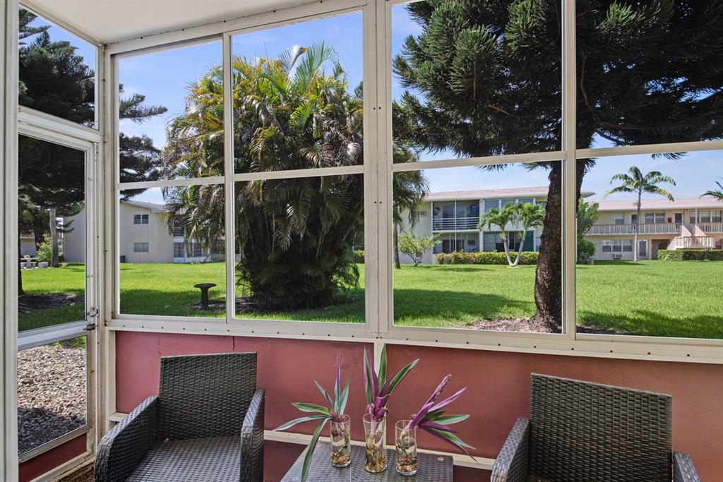 Charming 1 bedroom, 1.5 bath ground floor unit in Century Village, a centrally located, active adult community. Highly functional kitchen provides plenty of cabinets and counter space. Plenty of room to entertain with a living room, dining area and screen enclosed patio. Main retreat with his and hers walk in closets and and a slider to the patio. Neutral tile, neutral decor and an abundance of natural light complete this home. Enjoy peace and tranquility on your enclosed patio with a serene garden view. Parking is located directly in front of condo. Century Village offers first class amenities which include a clubhouse with a theater, a fitness center, indoor pool, community room, library, resort style pool, tennis courts, shuffleboard and Bocce ball.