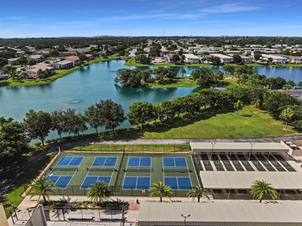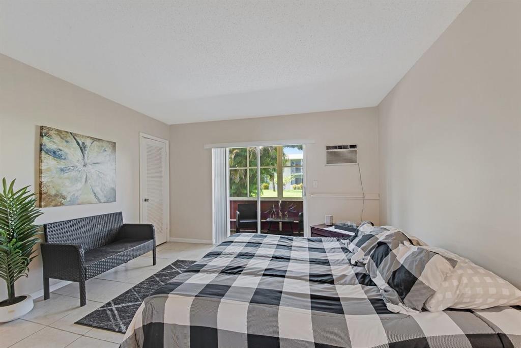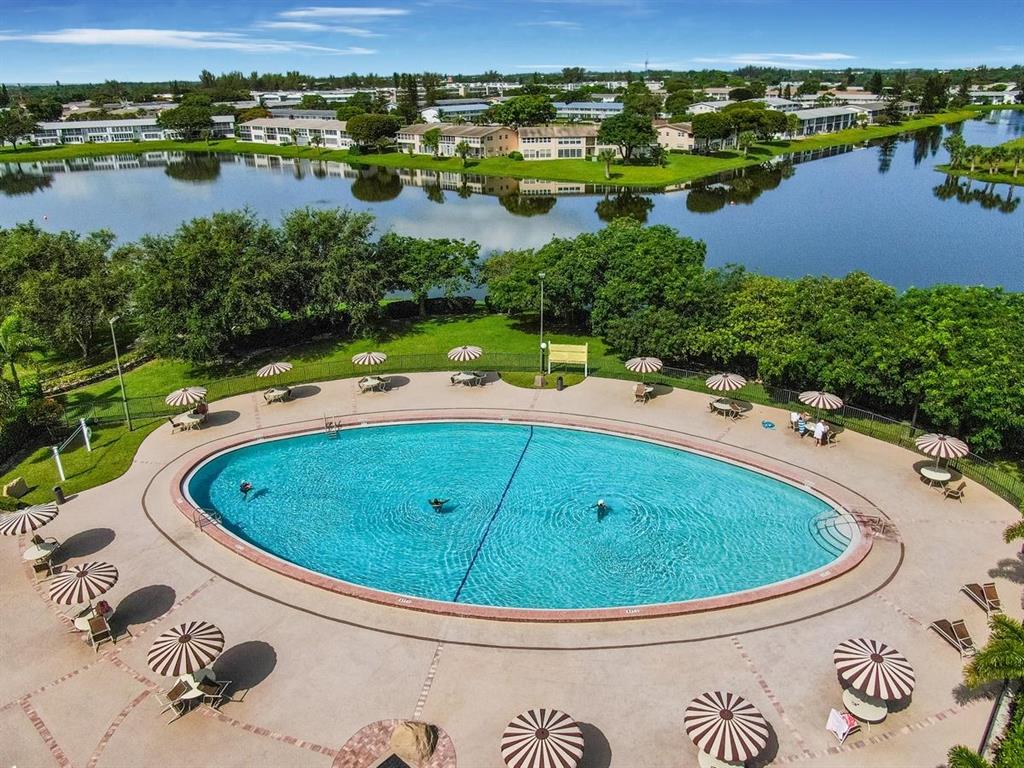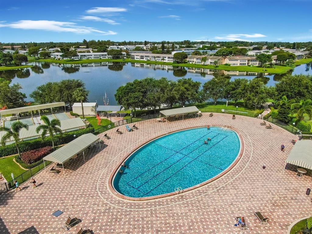 Charming 1 bedroom, 1.5 bath ground floor unit in Century Village, a centrally located, active adult community. Highly functional kitchen provides plenty of cabinets and counter space. Plenty of room to entertain with a living room, dining area and screen enclosed patio. Main retreat with his and hers walk in closets and and a slider to the patio. Neutral tile, neutral decor and an abundance of natural light complete this home. Enjoy peace and tranquility on your enclosed patio with a serene garden view. Parking is located directly in front of condo. Century Village offers first class amenities which include a clubhouse with a theater, a fitness center, indoor pool, community room, library, resort style pool, tennis courts, shuffleboard and Bocce ball.