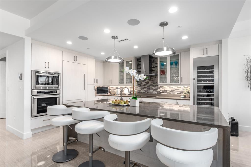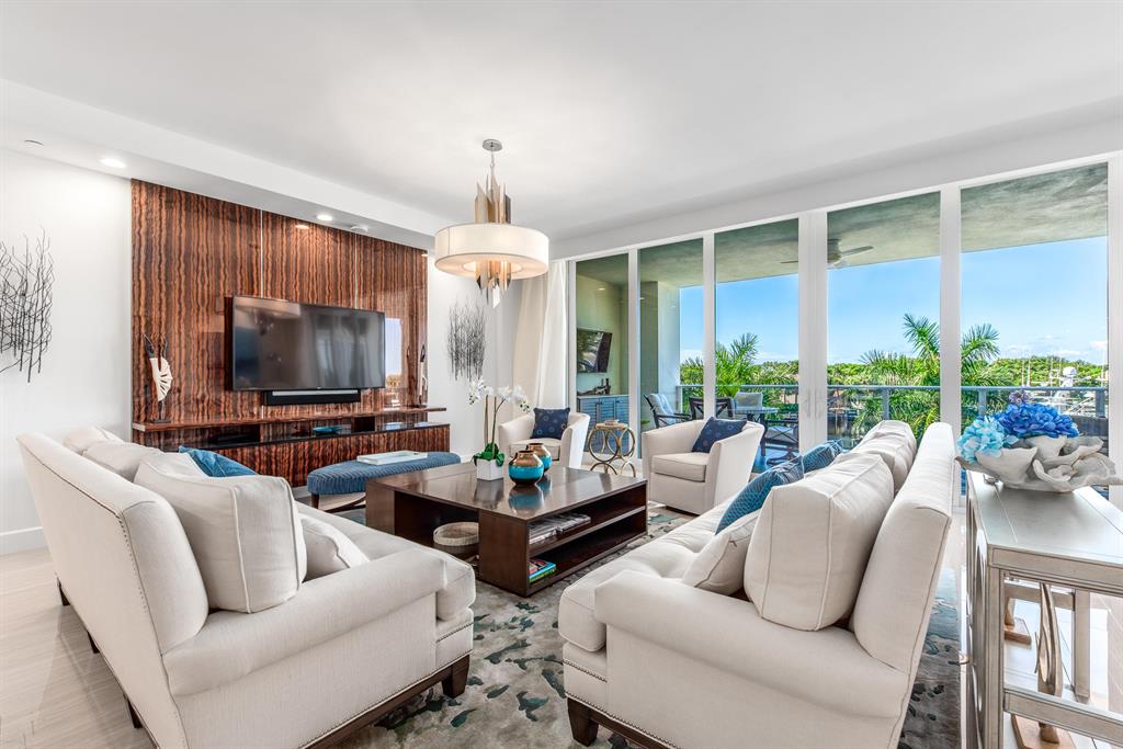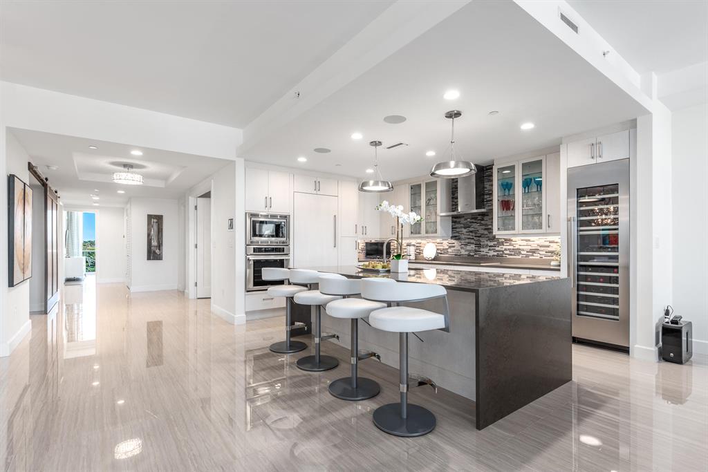 Chic modern residence featuring 4 bedrooms, 3.1 baths, 2 garage parking spots & 3,241 AC SF with best waterfront views in Azure. Newly constructed in 2017, this boutique condominium was built & engineered with the highest quality materials & finest workmanship with strict attention to detail. Other features include 10' ceilings throughout, impact resistant ceiling to floor sliding glass doors & windows for a cool contemporary look & providing lots of natural light, upgraded porcelain tile flooring throughout the entire condominium. The open Island kitchen is beautiful & functional with architectural grade cabinetry, quartz counters, Thermador refrigerator/freezer, 100-bottle built-in
