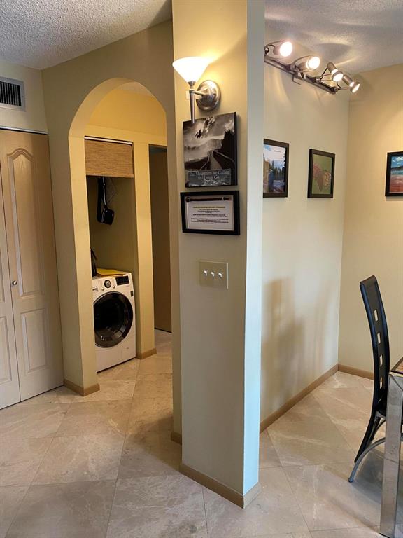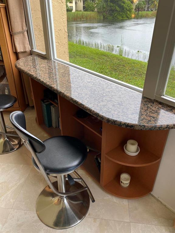 Prepared to be Wowed. Unique remodeled first floor 1/1.5 condo. Remodeled 2006, Impact windows and front door. New LG combo W/D Jan 2020. GE Profile appliances, granite counter, additional storage cabinets in utility room, updated bathrooms. Turkish marble floors throughout the unit. New air handler 2019 and compress 2014, W/H 2018. Well maintained move in condition. Best lake view in Village with N/S bldg exposure Make an appointment today to see this unique unit. One occupant must be 55+, no dogs but a service dog. Two indoor cats OK. 24/7 guard gated active community. Courtesy Bus service to grocery, malls, shops two days a week.