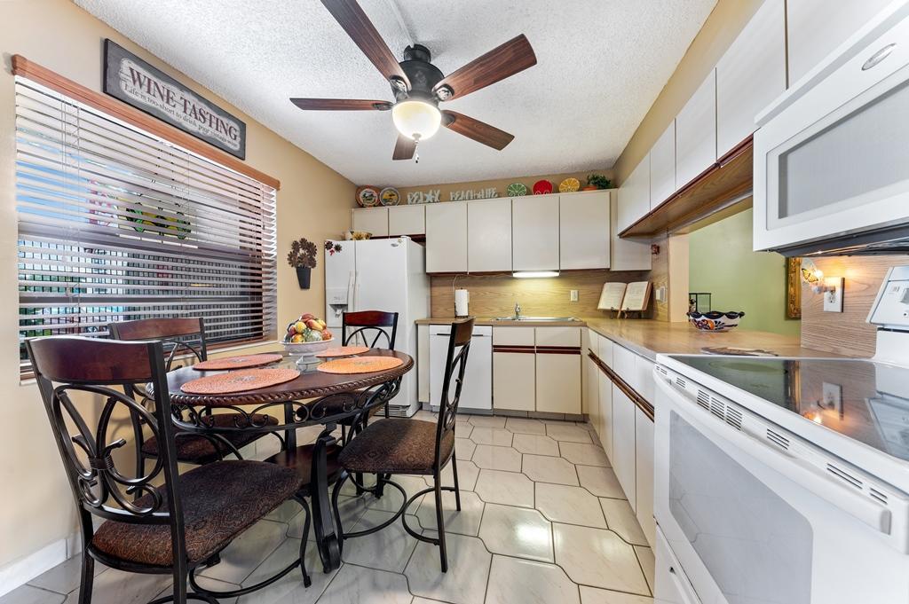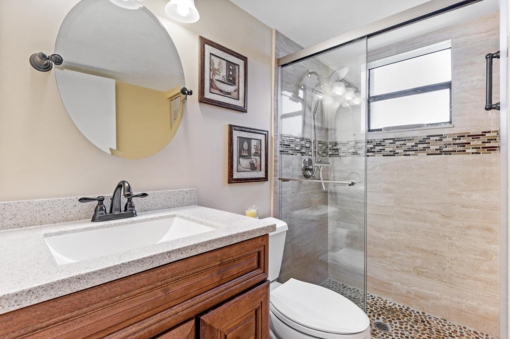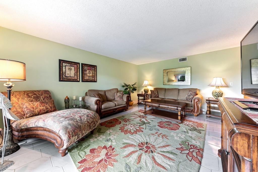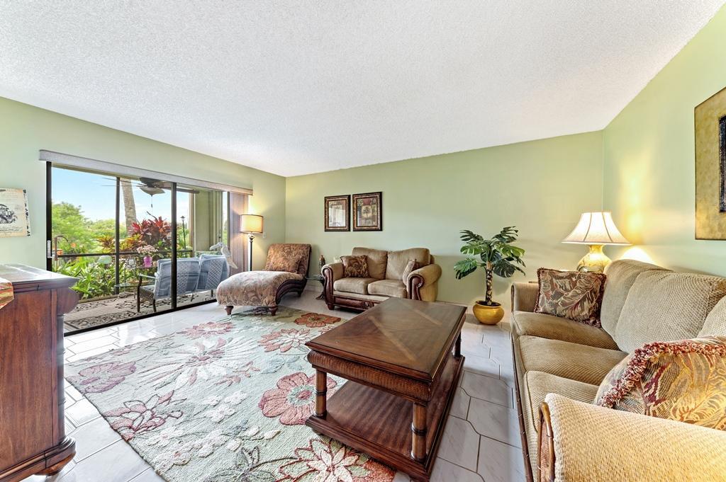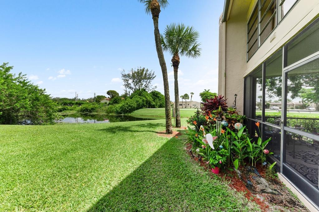 This is the one that will check all the boxes! This 2 Bedroom/2 Bath Lakeside Unit has Views of 2 Lakes & is on a Large LushlyLandscaped Point Lot! It has been Updated & Freshened with Quality Finishes, Materials & Appointments rarely found! The Excitement begins with the Professionally Landscaped Entry with Beautiful Flowering Tropical plants & flowers that give this Residence a Tropical Air about it, that is unique to this Unit! There are Accordion Hurricane Shutters throughout, including the Screened Terrace! There are Beautiful Decorative Ceramic Tile throughout starting with the Gracious Foyer that leads to the Updated Kitchen with a Generous Eating Area, Formica Cabinets & Counter Tops, a Newer Whirlpool Double Door Refrigerator, 3 year old Bosch Dishwasher, a Whirlpool