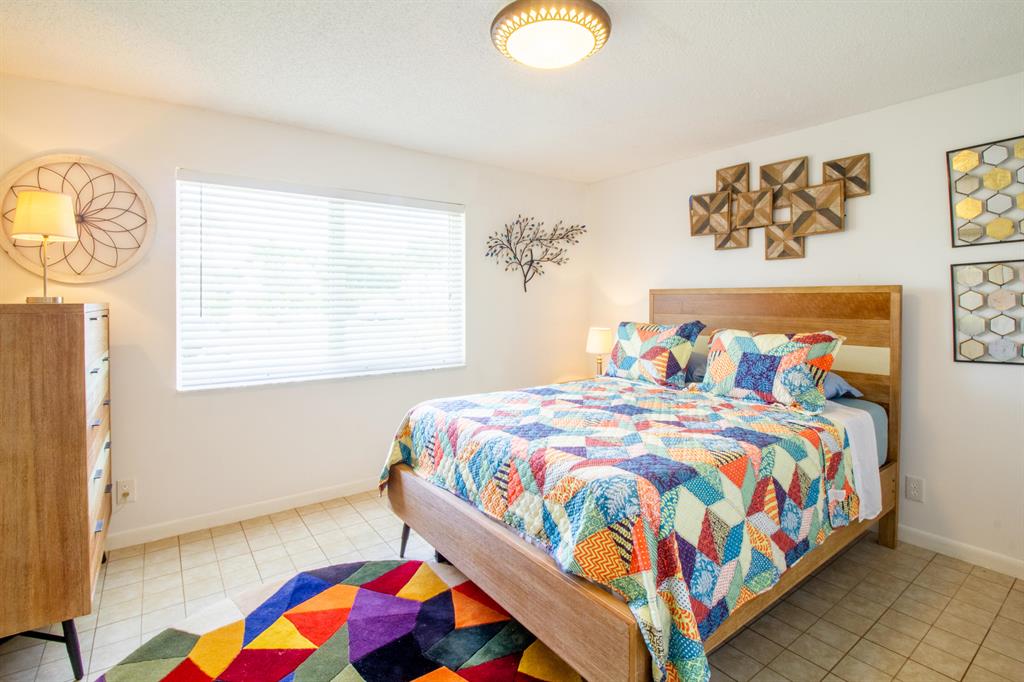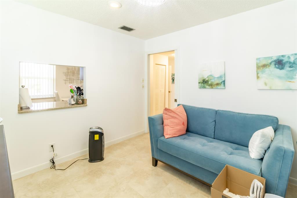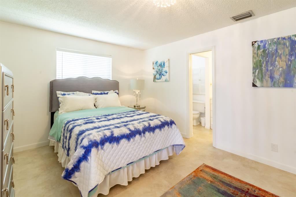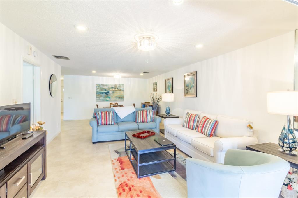 Beautiful waterfront corner villa with 2 bedrooms 2 full baths with large Florida Room offering tranquil lake views. Full inside laundry - no sharing! Completely and tastefully updated open floor plan, gourmet kitchen with granite countertops, 18x18 porcelain tile flooring, walk-in closets, impact windows and accordion shutters. Drive up to your parking at the front door. Refreshing pool across the lane. The community is centrally located just minutes from I-95, stunning area beaches, shopping and Palm Beach International Airport.