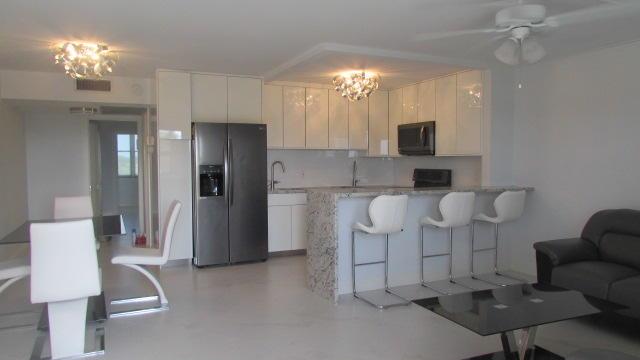 For sale in a 55+ adult retirement community an amazing condo in a hi-rise elevator building. Everything you ever wished for is in this unit - gorgeous porcelain floors, open kitchen with white cabinets, Central Air, granite counters and dual sinks, totally remodeled bathrooms, closets galore in the bedroom and an over sized lanai with a majestic sunset over a breathtaking view of the lake. Come and enjoy all amenities Century Village living has to offer, like a fully equipped fitness center, indoor and outdoor pools, club house, beauty/barber shop, Walgreens, free transportation, security, close proximity to PBI airport, shopping, beaches, restaurants. Hurry, will not last