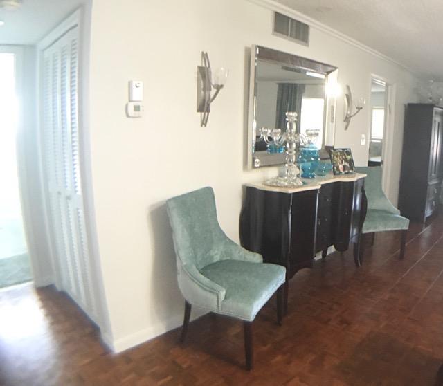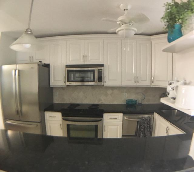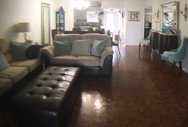 For Sale in a 55+adult retirement community an absolutely gorgeous 2 BD, 2 full Baths outside corner condo. The unit boasts C/A, teak flooring in living room, dining room and bedrooms, all new ceramic tiled full baths, open state of the art kitchen. What a pleasure working with two sinks, prep and serve on granite counter tops! You will enjoy a double dishwasher, stainless steel appliances, all wooden 42'' white cabinets. This magnificently appointed condo has an additional 3rd. Bedroom/study/lanai. All windows were replaced, closets added, and most important of all - the association allows washer/dryers. Unit sold unfurnished. South Florida living at its best, amenities like a fitness center, club house, free transportation, pools, classes, close to PBI airport, shopping, beach