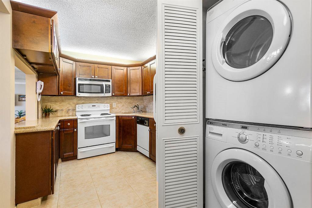 Meticulously maintained spacious 2/2 condo on the ground floor! Newer kitchen with a water filter system and silestone counters, newer tile throughout, guest bathroom has been remodeled, lots of closet space, and both bedrooms have walk in closets. Full size stackable washer and dryer in the unit and a covered screened in patio. This unit is within walking distance to the clubhouse, pool, tennis and all amenities. Pine Ridge is a gated community with low monthly dues and only 10 minutes to Palm Beach International airport, the beach and downtown WPB!