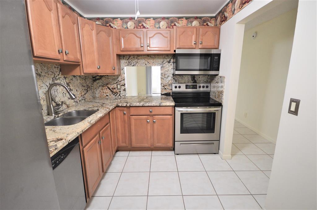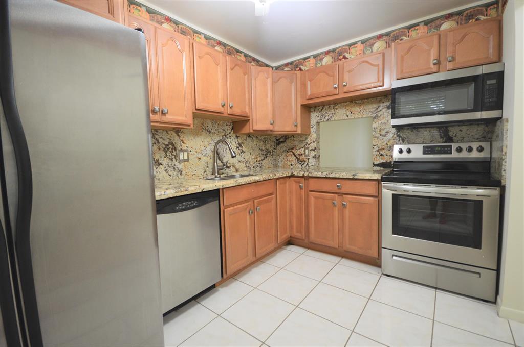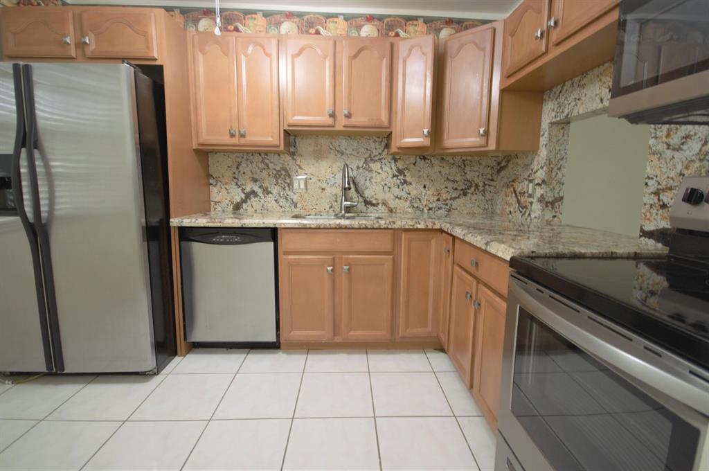 Great and very desirable villa with lake views in the newer section of Golden Lakes gated 55+ community. The amenities featuring heated swimming pool, tennis courts, saunas, fitness center and a courtesy bus, organized attractions to keep you busy, cards, trips, shows, something for everyone! located close to shopping, restaurants, turnpike and PBI Airport!This is 1 Bedroom and 1.5 Bath, one story villa/condo, fully RENOVATED in traditional style, super clean and ready to move! There are tiled floors throughout, new kitchen cabinets, granite counter-tops and back-splash, new stainless still appliances, updated both bathrooms, large closed patio with tinted windows, new shut off valves in A/C and water heater, lot's of storage space and W/D inside the unit.