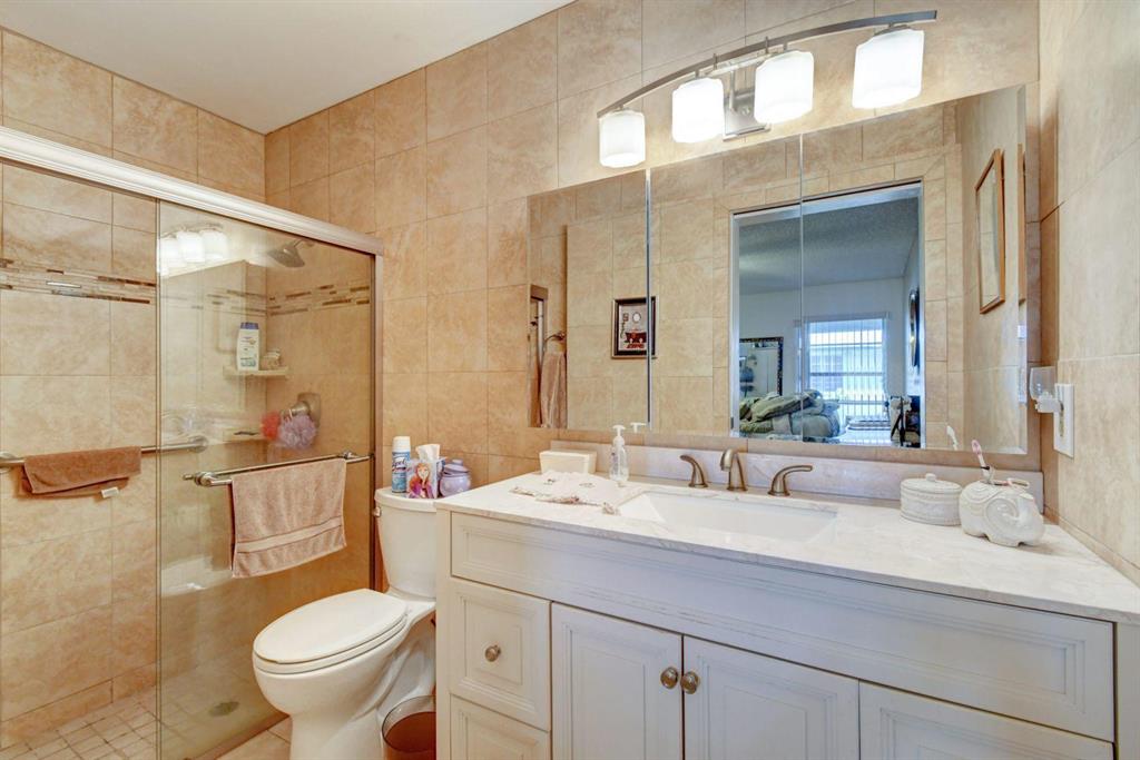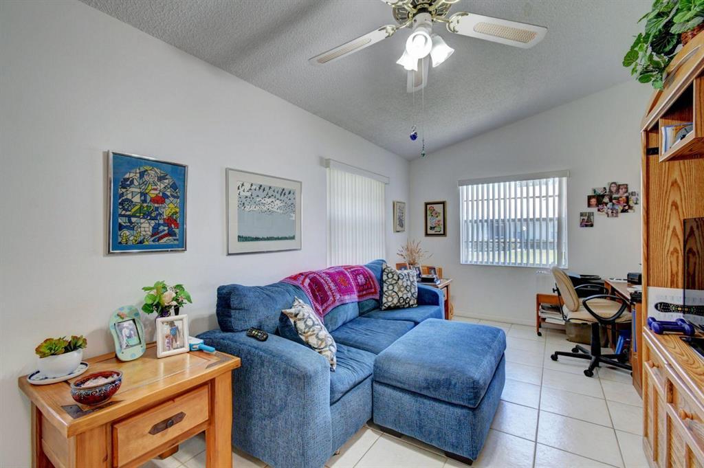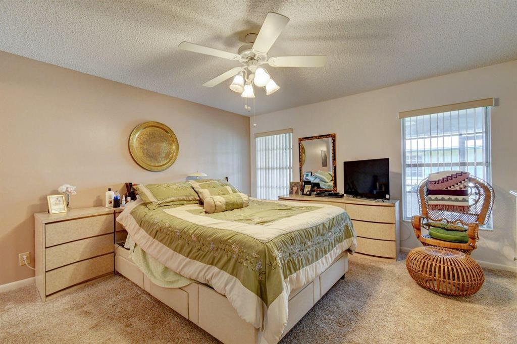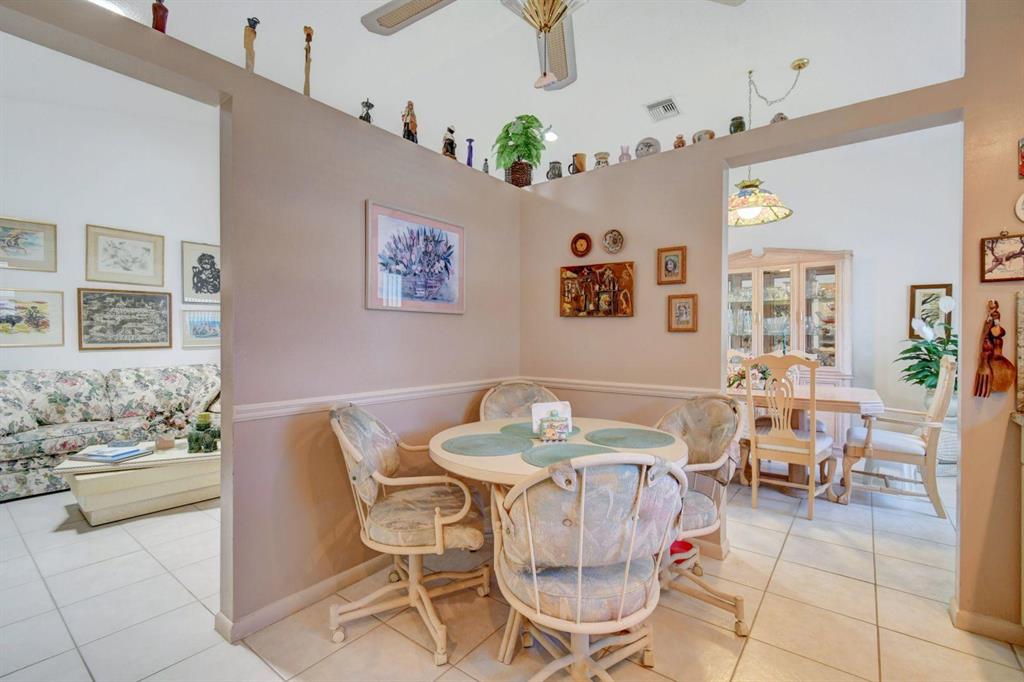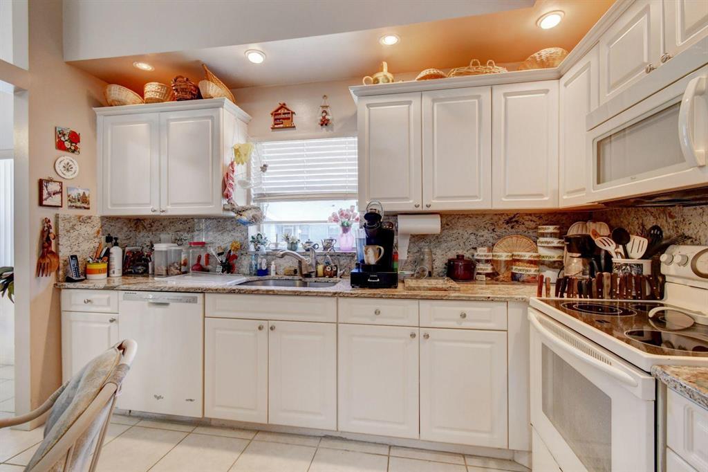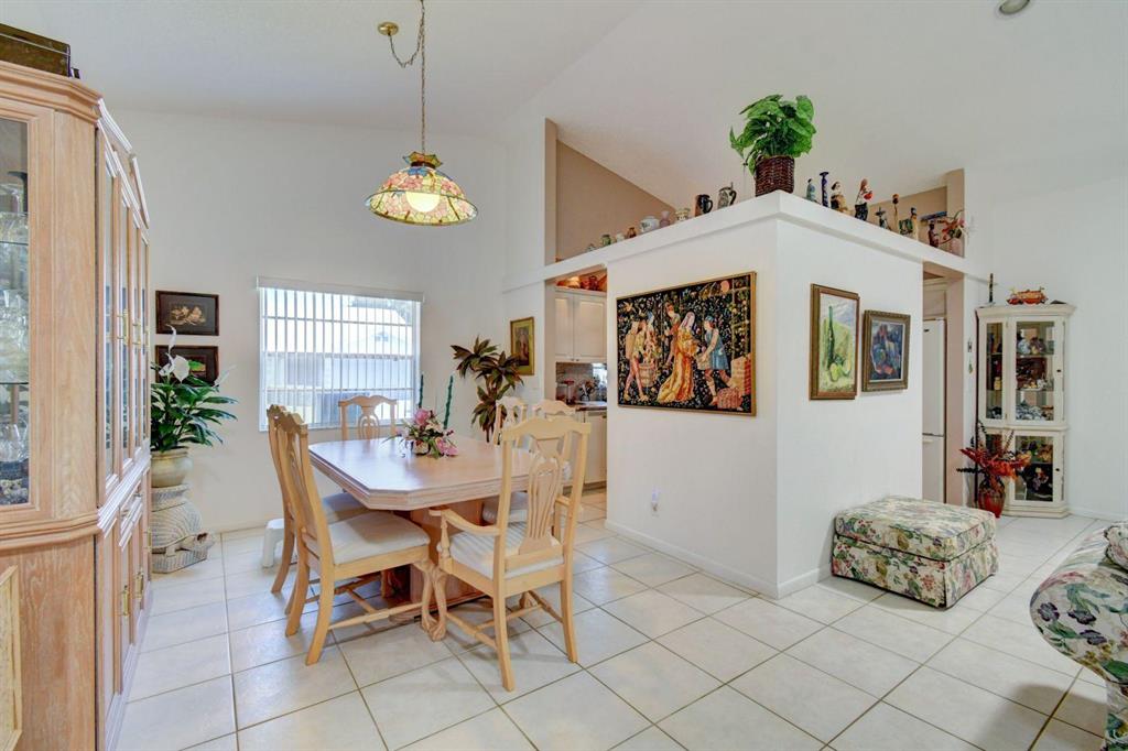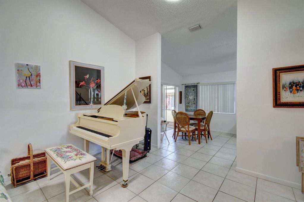 Resort style living attached in sets of 2, in cul de sac, Tiled incls. both patios & all other areas except, carpet 2 BR's. Master bth. upgraded, hi toilets in both baths. kitchen cabs up dated, Granite counter tops, deep & wide sink, accordion shutters, solar & sky lights in living room, 6 fans, A/C system 1 yr., front patio new door & newly re screened, new garage opener. Step down shower in master bath. Community pool heated, gyms, saunas for men& women. Minutes from P.O., grocery, gas & more. I-95, airport, Turnpike 10-15 minutes, beaches 20 min.. Active community w/miniature golf course, shows & more. No golf course fees, TV/internet incl. in fees.