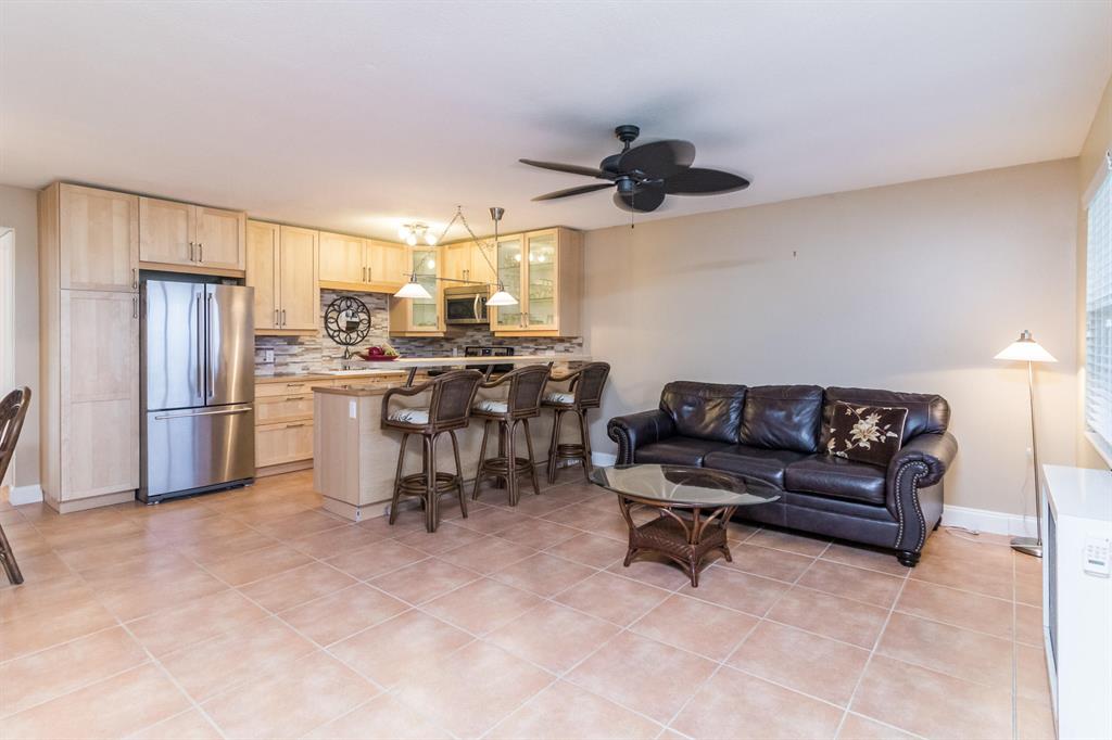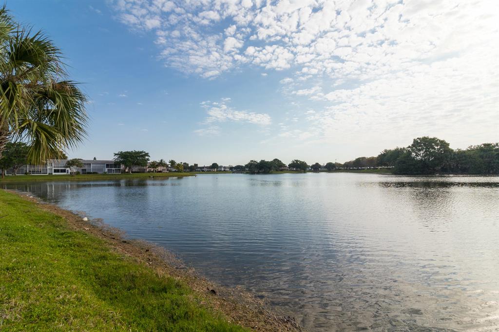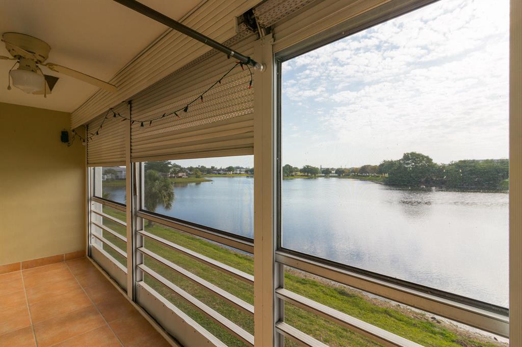 Magnificent lake views surround this fully renovated 1BR/11/2BA condo located in the desirable 55+ community of Century Village. Desirable features include tile flooring throughout, large windows and sliding glass doors, a renovated kitchen with wood cabinets, tiled countertops, newer stainless steel appliances, and a breakfast bar, a spacious master suite with ample storage space and a gorgeously re-done bath, and an expansive screened-in covered balcony overlooking the lake and the surrounding tropical landscaping. Water heater is 1 years old. Elevator located near unit. Century Village is a resort-style retirement community which provides countless amenities to its residents.