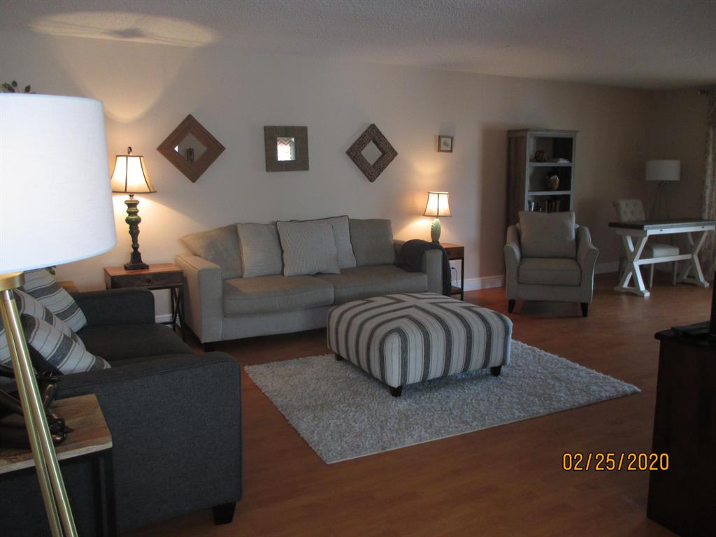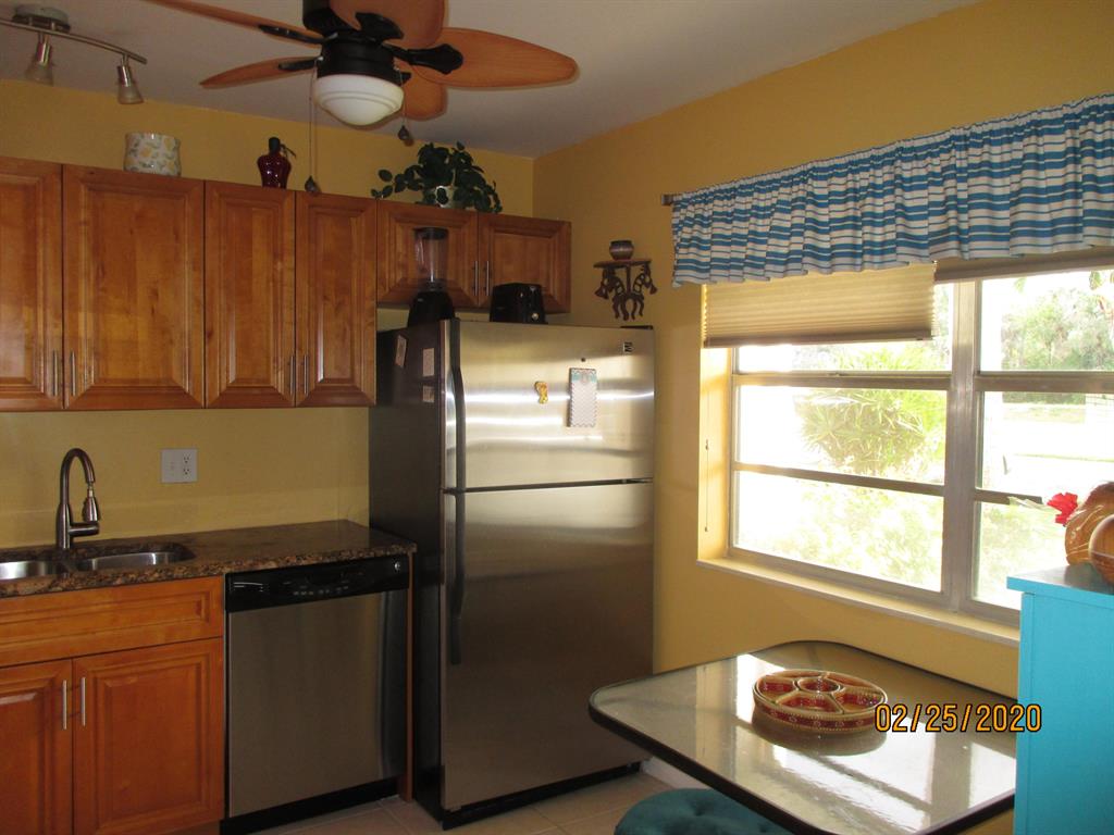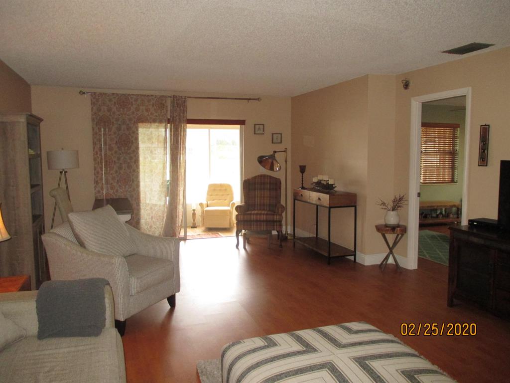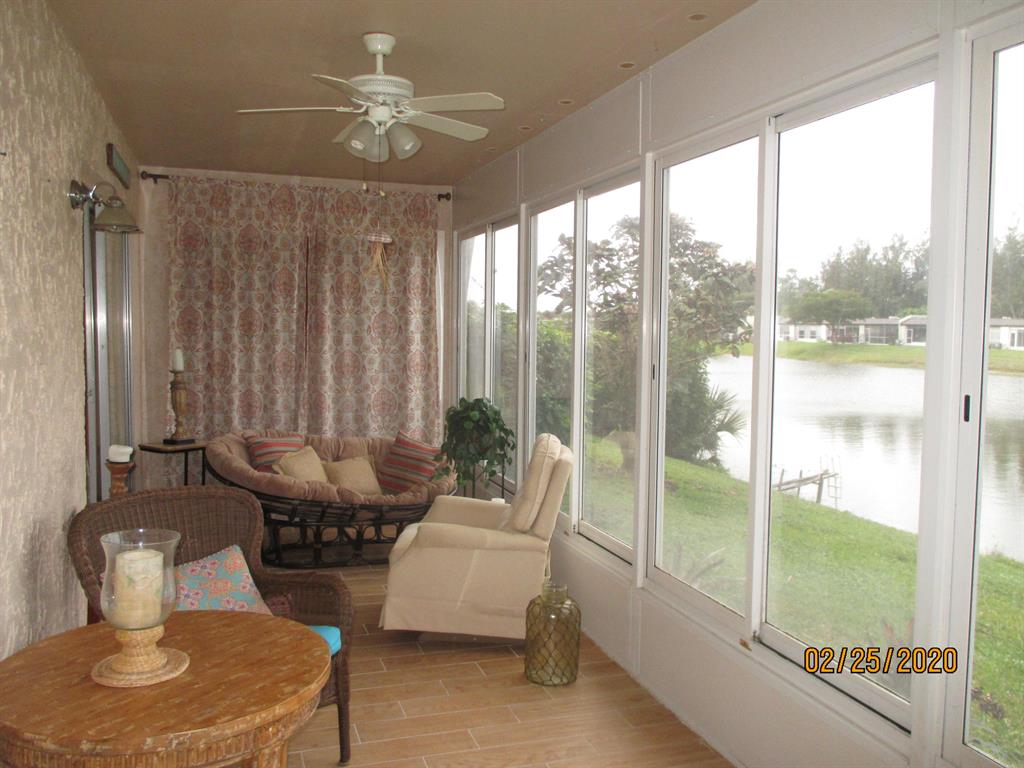 Largest model in Golden Lakes, E Villa with formal dining area. Updated kitchen, flooring and baths. Tile floors. Large encl patio with removable acrylic windows. Extra storage closet on patio & full size washer/dryer. Offered with or without furniture. Lots of amenities in Golden Lakes. Phase B section's maintenance includes Comcast Xfinity Cable, Internet, bldg insurance, water/sewer, 24/7 guard gated, recreation facilities, tennis, full time social director, courtesy bus two days a wk to grocery, shops, malls and much more. Come Discover Golden Lakes.