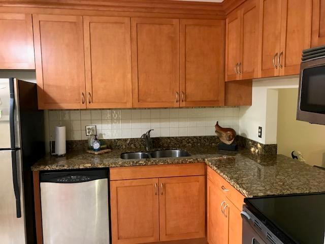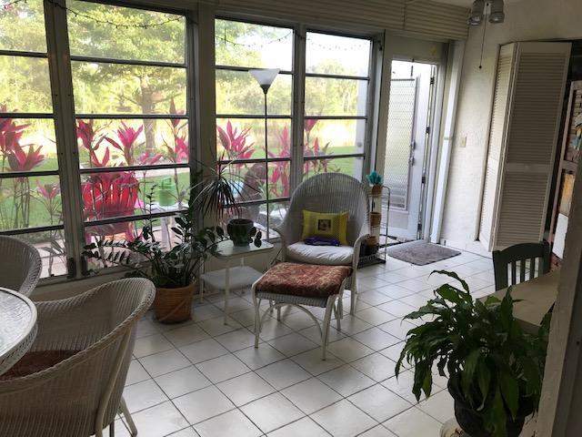 BEST LOCATION IN GOLDEN LAKES! Just bring your clothes and toothbrush to this spacious 2 bedroom / 2 bathroom villa tucked away with a private water sanctuary behind featuring beautiful birds to watch. This villa features cream tile floors throughout, updated baths with coco cabinets and granite tops. The master bath has a Bath fitter finish with grab bars throughout. The updated kitchen with craftsman style cabinets and stainless steel appliances and granite countertops. HUGE Florida room overlooks peaceful outdoor seating with view of calm lake. This unit is sold turnkey and ready for new owners. (exclusions apply to some paintings and personal items.) View today and fall in love.