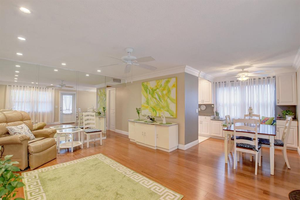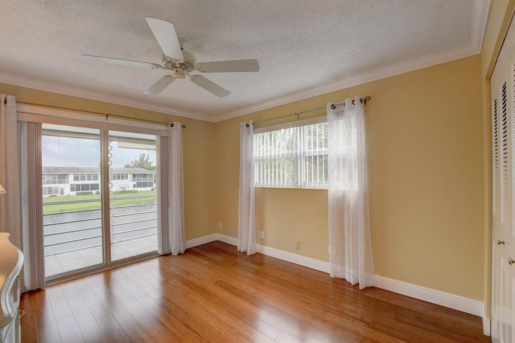 WOW!! You won't be disappointed when you see this TURN-KEY condo! This lakefront end-unit is peaceful, and super clean with many updates and great attention to the details! Features: remodeled white cabinetry, granite counter tops, and sub-tiled back splash, authentic hardwood flooring throughout living/ bedrooms, all impact glass, crown molding, customized closets in each room and secondary bathroom. It even comes equipped with a newer a/c that's just a few years old.Enjoy the resort style amenities and convenience of living in Century Village! Great shows to see regularly ! Be entertained at home!Don't miss out on the chance to make this unit your perfect year- round or seasonal residence! All you need is your toothbrush to move in! Come see it today while it lasts!