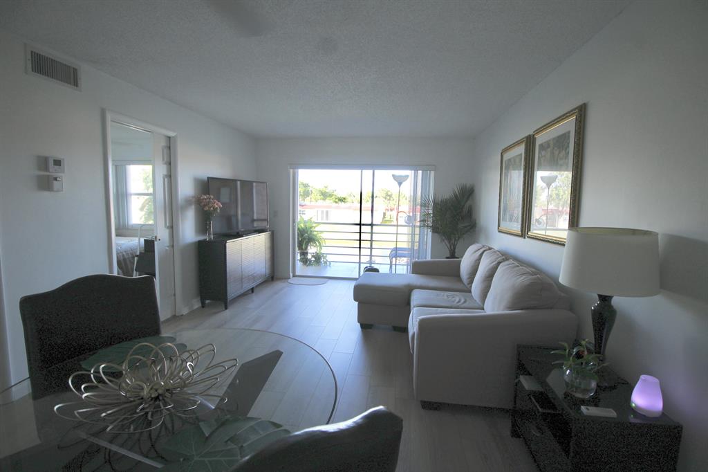 This 2nd story condo with a water view is move-in ready and super clean! 55+ community with tons of amenities including pool, recreation areas, clubhouse with scheduled activities, library, 24/7 security guard gate with courtesy bus service and more. This unit has a new AC coil (2019), new water heater (2020), new laminate wood floors (2018), Hurricane accordion shutters on patio door (2018), new roof (2019), Impact Windows (except patio door which has an accordion shutter). All room measurements are approximate. Convenient to shopping, downtown, beach and entertainment.