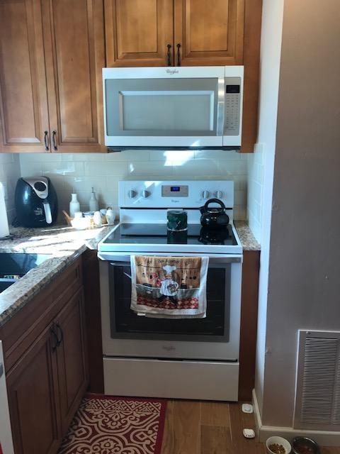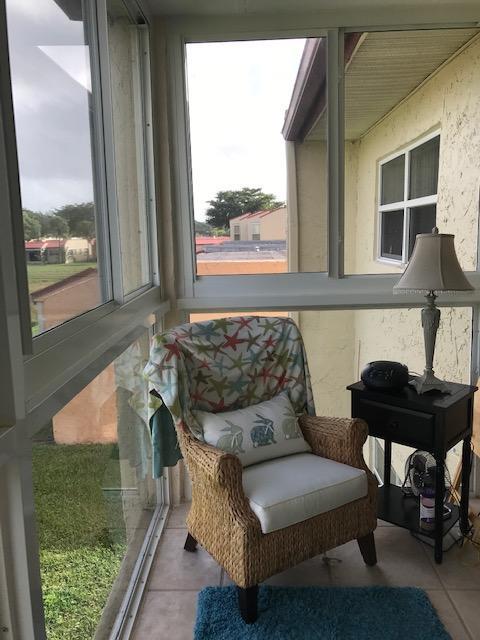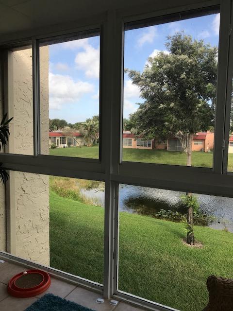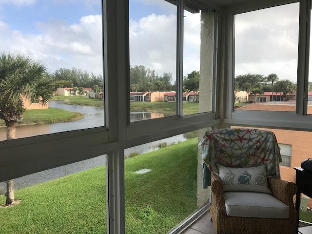 Corner 2nd flr 1/1.5 updated unit with ceramic floors, impact windows, enclosed glass porch, washer & dryer. Centrally located between both Skees Road and front gate. Satellite pool for this building just feet away but walking distance to both clubhouses. Master bedroom has 2 windows for extra light and a window in both bath rooms. Glass porch has beautiful views and impact window which makes the unit quiet and safe. Parking space right in front of walkway to stairway. Located in West Palm minutes to turnpike and shopping and beaches.