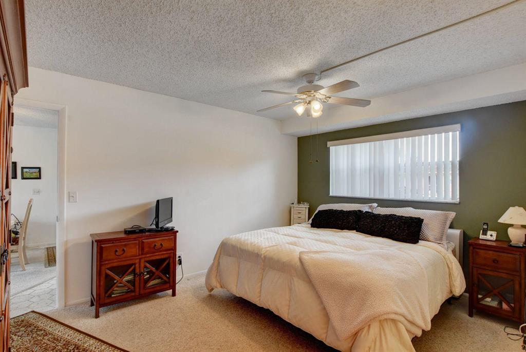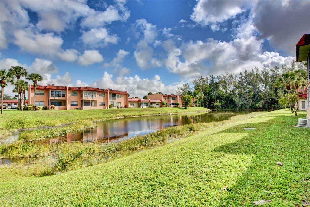 This well maintained condo is a two bed two bath convertible floor plan: the 2nd bedroom is open space to the living room. Some updating in the bathrooms. Enclosed patio overlooks a lovely canal which gives a feeling of relaxation and serenity. Beautiful ceramic tile in entry, kitchen and both bathrooms. Carpet in some rooms. One designated parking spot. Plenty of guest parking. Short walk to two laundry buildings and club house. Water pipes and space in closet to accommodate stackable W/D. Active 55+ guard gated community with many social activities. Golden Lakes offers a courtesy bus two times a week to malls, shops, grocery stores. Close to State Road 441 and turnpike. Golden Lakes is the ideal next new home for you. Please come look and see for yourself.