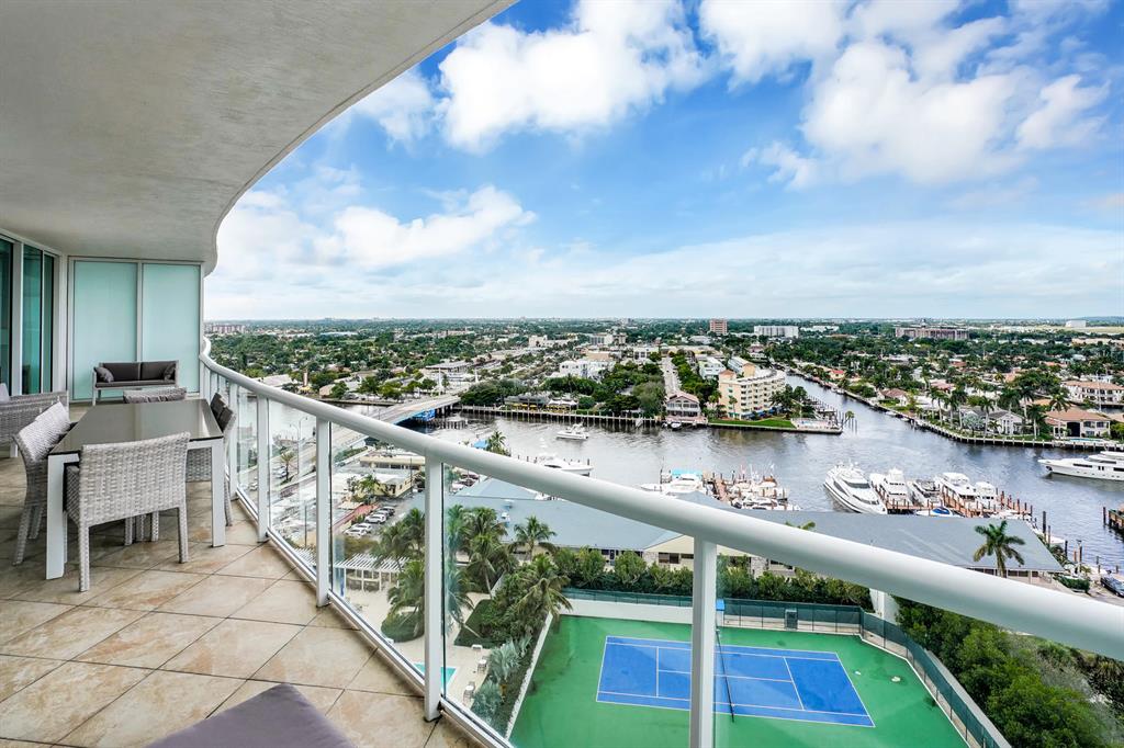 SPECTACULAR TWO BEDROOM CONDO WITH A DEN AT THE LUXURIOUS PLAZA AT OCEANSIDE LOCATED ON THE 15TH FLOOR WITH BREATHTAKING INTRACOASTAL AND CITY VIEWS FROM EVERY ROOM. PLENTY OF NATURAL LIGHT AND AN OPEN FLOOR PLAN WITH FLOOR TO CEILING WINDOWS WITH A SPACIOUS OPEN TERRACE FROM THE LIVING ROOM AND THE MASTER SUITE. SOLD TURNKEY WITH GORGEOUS FURNISHINGS AND DECOR DESIGNED BY AN INTERIOR DECORATOR. THE GOURMET KITCHEN HAS EUROPEAN STYLE CABINETRY, VIKING STAINLESS STEEL APPLIANCES AND GRANITE COUNTER TOPS. THE OVERSIZED MASTER SUITE HAS TWO WALK-IN CLOSETS AND THE GUEST SUITE HAS ONE WALK-IN CLOSET WITH A PRIVATE BATH. TWO GARAGE PARKING SPACES AND A LARGE STORAGE UNIT ALSO COMES WITH THE CONDO.