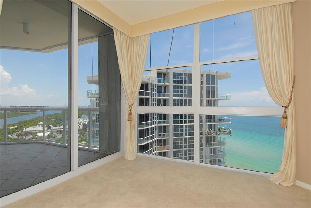 This panoramic circular corner unit with wrap terrace has 10ft ceilings & walls of glass allowing one to blend with the environment & the sky having crystal clear & multiple vantage views of the Ocean, intracoastal & city of Ft. Lauderdale. With 3 bedrooms & 3 bathrooms it's spacious & airy. The 3rd bedroom has built ins easily offering use as an office. Shutters are included. Conveniently & closely connected to Las Olas, the airport, the port, theatres, restaurants’, multiple casinos & nearby race tracks, it allows for ease of activity, or if preferred sought after privacy. Complex is pristine with many upgrades including two pools, two gyms, tennis courts, common area rooms, bbq & parklike spaces. An owner’s only bistro completes the easy & luxurious lifestyle. Two pets allowed.