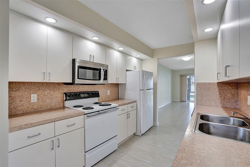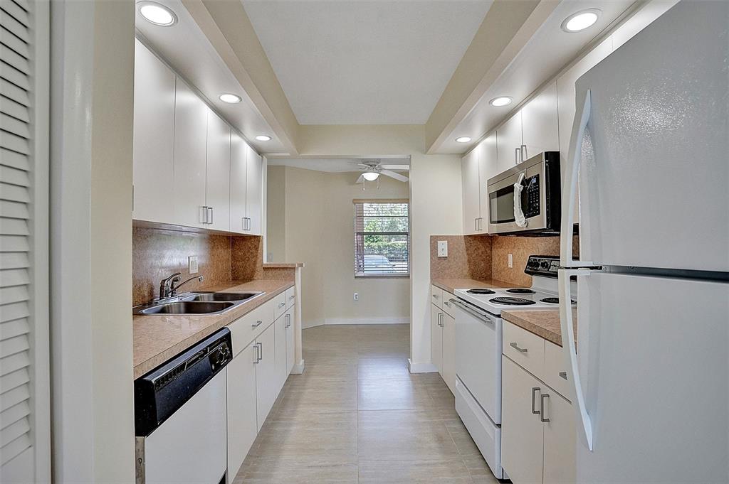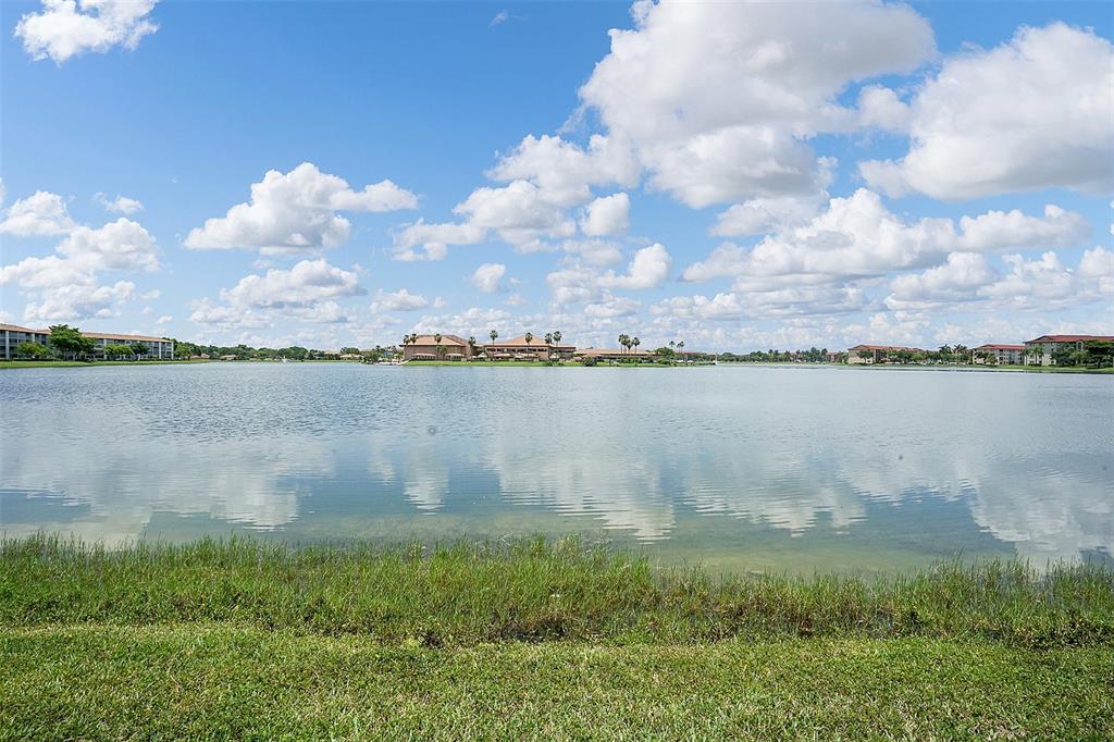 LOCATION and UPGRADES! ON THE LARGEST LAKE! 2 BD 2BA BEAUTY. Newer White Cabinets in Kitchen and Baths, Granite Counters, Porcelain Tile Floors throughout. FIRST FLOOR LOCATION. Washer and Dryer inside. Hurricane Shutters. Won't last!
