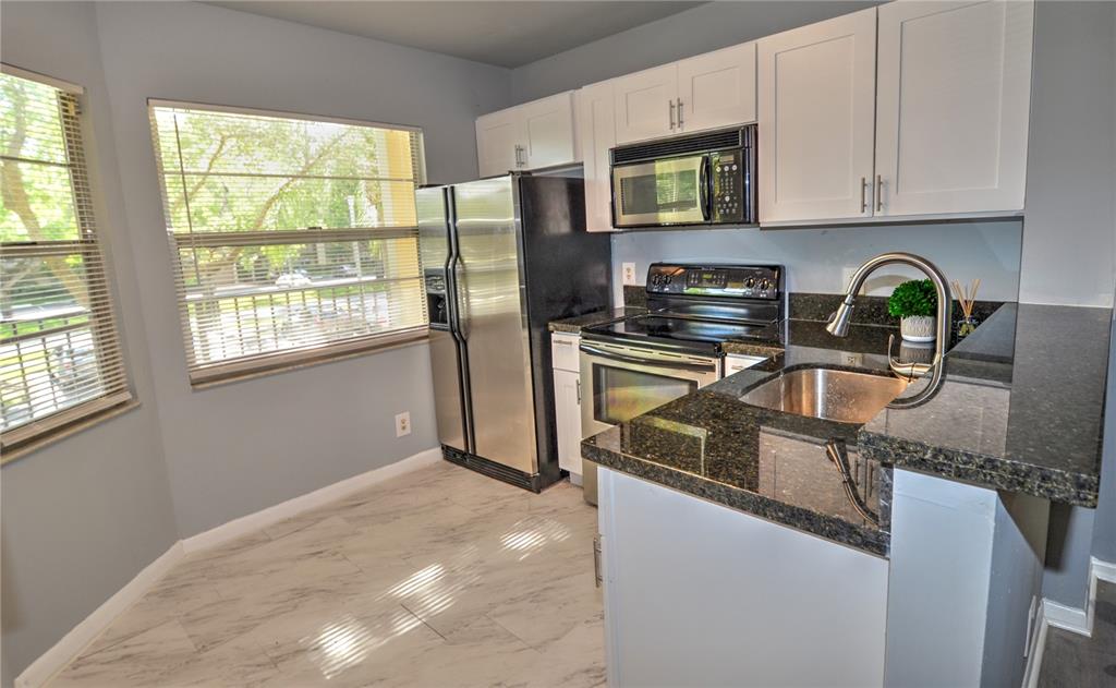 Fabulously upgraded unit! Brand new kitchen with granite countertops, custom cabinets, stainless steel appliances, brand new flooring throughout. This spacious 1/1 has lots of natural light, fresh paint, new w/d, and spacious storage closets. The bathroom has been upgraded with new toilet, vanity, and flooring. All top of the line modern finishes. Century Village is a 55+ community with resort style amenities a Great clubhouse, transportation, 24- hour security, eight swimming pools, pharmacy, movie theatre, billiards, cafe, and golf course.