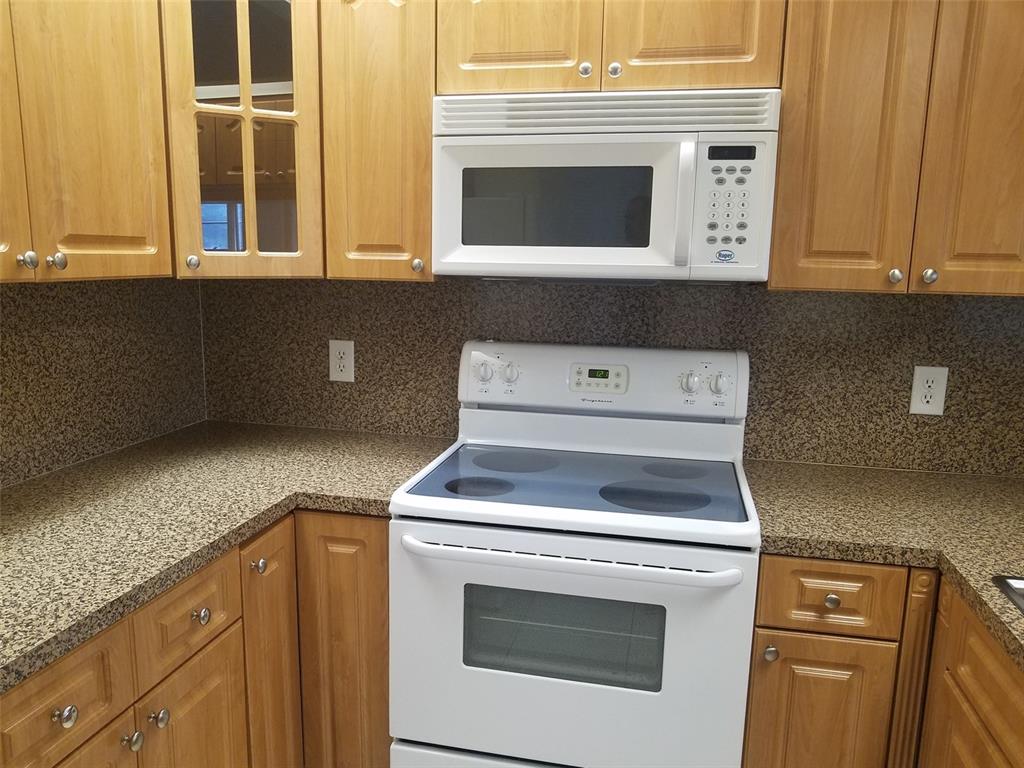Not too big, not too small -but just right for the Century Village buyer who is searching for a really nice one bedroom unit at a reasonable price. Quiet location tucked away in one of the corners of the development - no building facing you in front. This home has been gently updated with newer kitchen cabinetry & countertops, & the bath has a new vanity. Tiled throughout, so it's easy to get around, vertical blinds in the living room, horizontals in the bedroom. Tons of guest parking - this building has all the guest parking that's missing throughout the rest of CV! Stacked washer/dryer in the unit - no saving quarters or waiting for a machine. Well maintained and now freshly painted, put this one first on your list at this price. Service Maintenance Contract paid until April 2020.