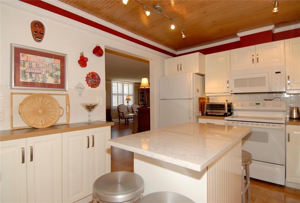 REDUCED!!Check this VERY Special Corner Unit, w/Ocean Views!!!Lovely, Renovated, Spacious Corner 2/2! Owner has created a Combo of "Cozy Home"& Charming "BeachPad"! Wood flrs thruout, Sparkling WHITE &Glass Kitchen w/"Island" Is Perfect 4 entertaining, *(& can be moved/removed simply by sliding 4 UR own use) PRIVATE WASHER/DRYER for this Unit ONLY! Huge walk-in Closet in Master Suite-Sparkling Bthrms! Just STEPS2SAND, Hollywd Broadwalk, BikePaths & Bistros! B E S T parts of living in this "Niche area" in 1 of the small 'cluster' of "Boutique Bldgs" along Ocean Dr!! Like Living in "'burbs" because of its Quiet Location, & Short Stroll To "MargaritaVille" & All it's Excitement. UNIT HAS Its OWN WASH/ DRYER!**IMPACT WINDOWS thruout! **AND: NEW ELEVATORS JUST Installed--Paid in Full!!