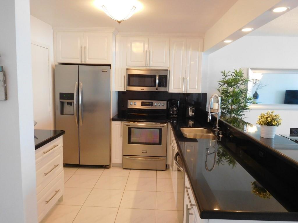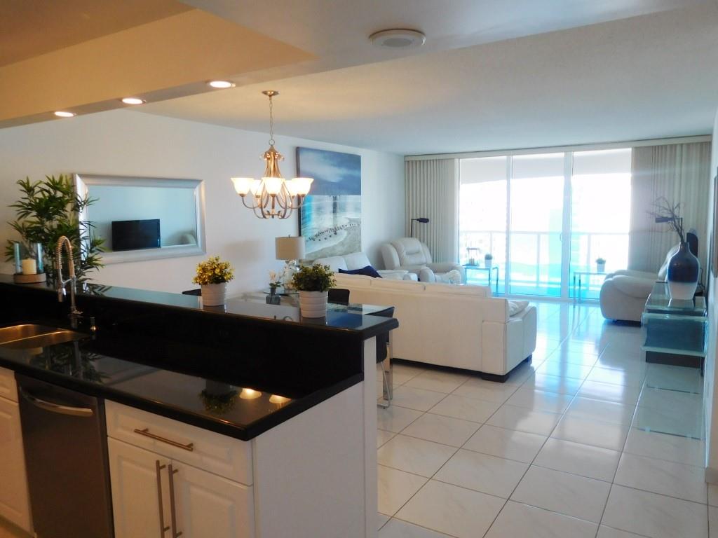 Facing Direct East. BEST VIEW FOR SALE AT THIS TIME. Morning Sun + Coffee + Ocean view = HEAVEN. Substantially & Totally Remodeled with class. Furnished/Turnkey. ALL NEW HURRICANE/IMPACT WINDOWS & DOORS. Open Kitchen, Granite, Top of the line SS Appliances, Recessed Lighting, Dual sinks. Ceramic Thru out. Both Bathrooms 100% New with high end plumbing / Shower fixtures, tasteful ceramic on walls, Vanities, Lighting, etc, Simply put JUST GORGEOUS. WI-FI, Cable, 24/7 Security, Gym, Heated Pool on Intracoastal, BBQ, Billiards, Sauna, Card Room, Valet & Shuffleboard are all included in this low maintenance fee of $559. ALL ASSESSMENTS ARE PAID. Across from Ocean. Near shopping, Bus, Casinos, Airport. Building also has their own Community/Shuttle Bus. Rent right away. A MUST SEE.