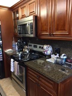Don't miss this one! 2 bedrooms 2 bathroom ground floor, meticulously remodeled with contemporary design & upgrades. SS appliances. Stackable washer and dryer. Tile throughout. Large master bedroom & walk-in closets in both bedrooms. Cute breakfast nook by kitchen with window. Resort style living with a multimillion dollar clubhouse with free shuttles to many destinations. Easy access to both entrances. This condo is in the most exclusive 55 plus community in Pembroke Pines. Movies, fitness center, transportation, free golf, pharmacy, cafe, 24hour security patrol and more. Please use show assist. Owner Occupied.