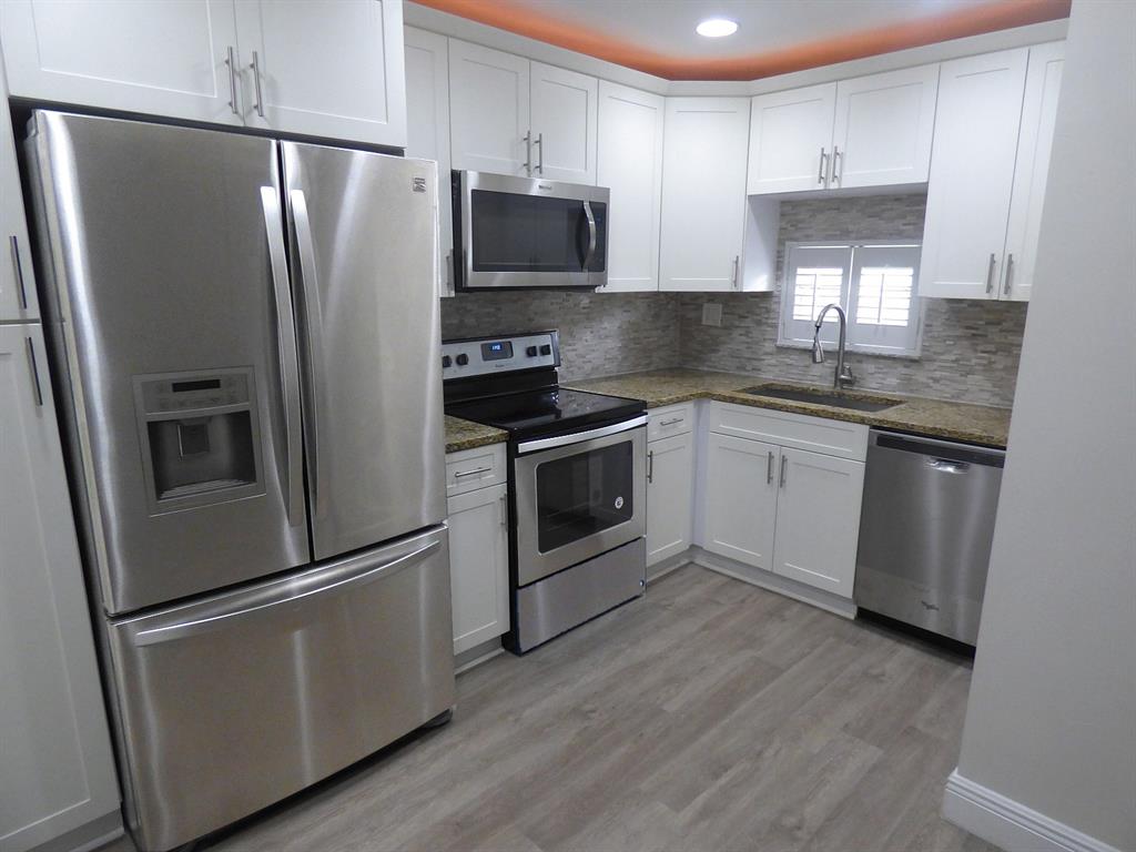 Newly remodeled, everything brand new. Open floor plan unit. Scenic water, golf and pool area view. Granite in kitchen and bathrooms. Brand new stainless steel appliances. Raised ceiling with recessed lighting, newer air conditioning, new doors, wood laminate flooring and plantation shutters throughout. Paid up rec lease. Free golf , 14 tennis courts, 7 pools, theater, fitness center, restaurant , 24 hr security,. Assoc. represents housing for older persons authorized (HOPA).. Click VIRTUAL TOUR to see fully interactive floor plan with photos. *** ASSOC. HAS INCOME AND CREDIT SCORE REQUIRMENTS: see attached file and broker remarks below.