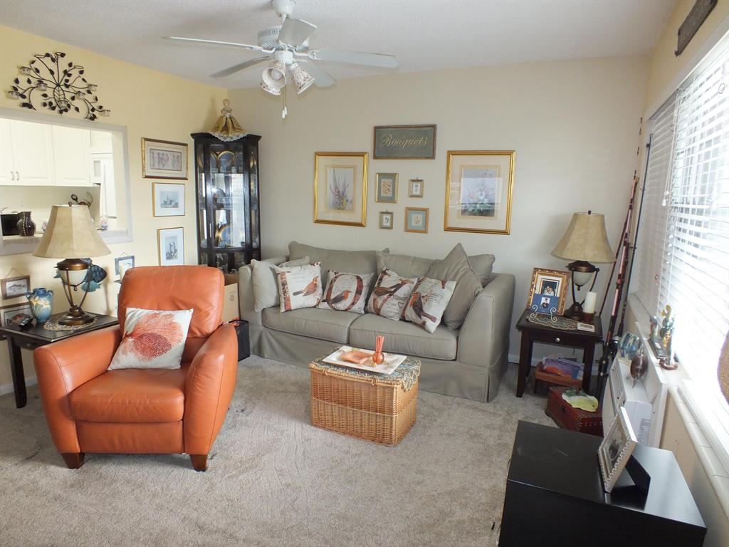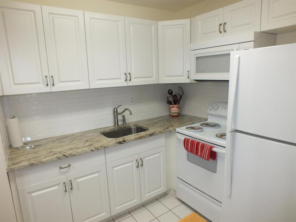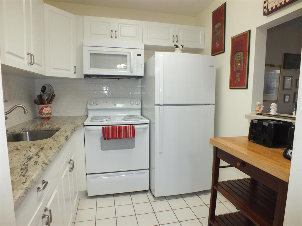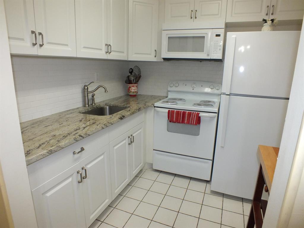 Updated Cozy 1/1 2nd Floor unit with new carpeting. New Kitchen with White Shaker Cabinets and Granite. All Appliances are new except for Range which is in excellent condition. Updated Bathroom with brand new tile floor and grab bars. Updated electrical wiring. 5 yr old WH, Brand New A/C in Bedroom & very cold A/C in Living area. Exterior of Building just painted 6 months ago. Nice garden view from Newly Screened Balcony. Some Furniture can stay. Hurricane Shutters for front windows. Motivated Seller bring all offers. No Pets & No Lease for 2 yrs. All measurements are approximate. All information is deemed to reliable but not guaranteed.