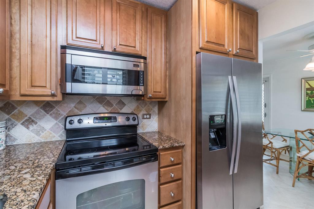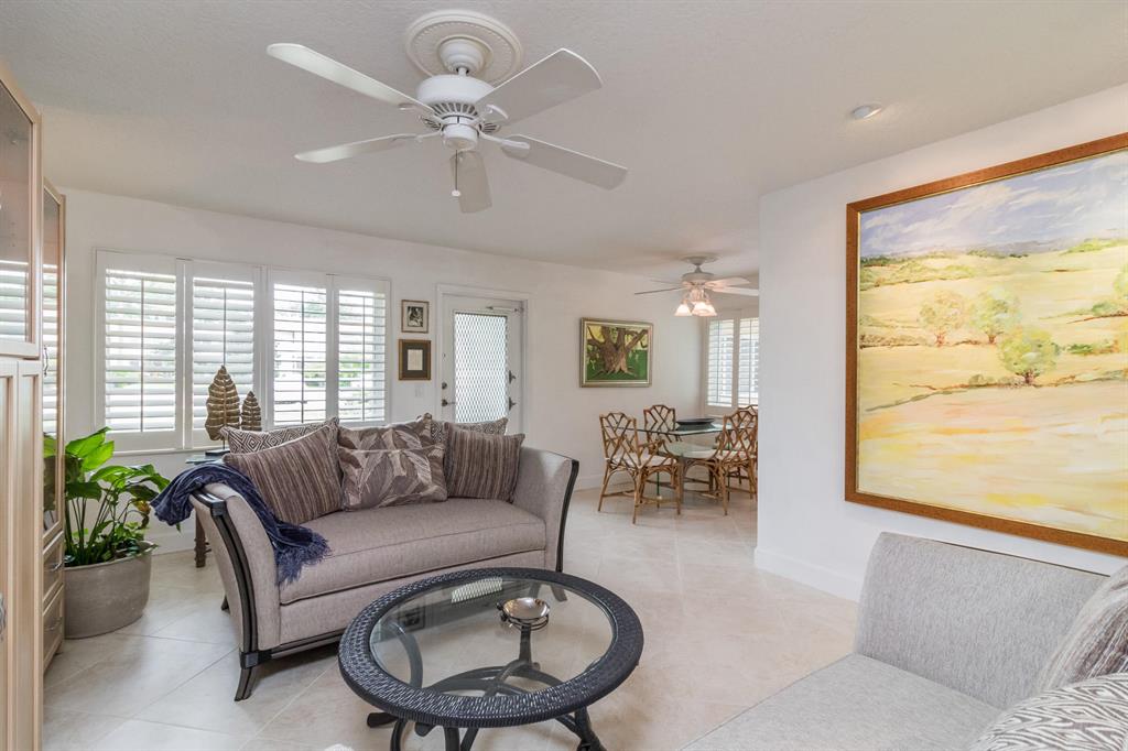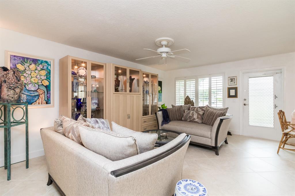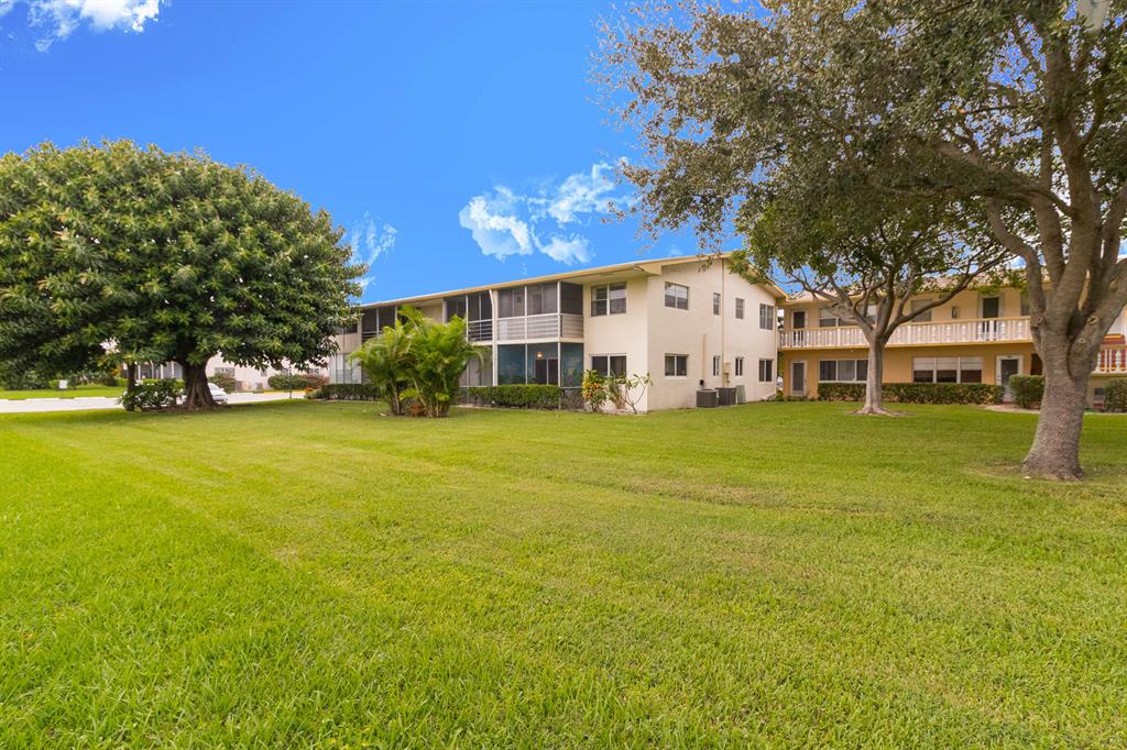 Beautifully updated from top-to-bottom, bright & spacious, open plan, comfortable 2BR/11/2BA home located in a great spot in the highly desirable community of Century Village. This turn-key 1st floor condo is in pristine condition and has a large, wide-open, sunny & airy interior, oversized impact windows with plantation shutters and sliding glass doors, neutral colors, knock-down ceilings, tile flooring, a spacious master suite with ample storage, and a large kitchen with oak cabinets and stainless steel appliances. The expansive screened-in patio has serene views of the large yard and surrounding trees and features a custom wall mural. Building roof soon to be replaced with no assessment. Newer water heater and AC.