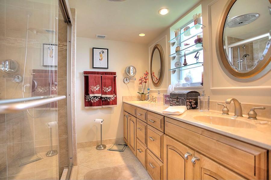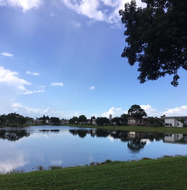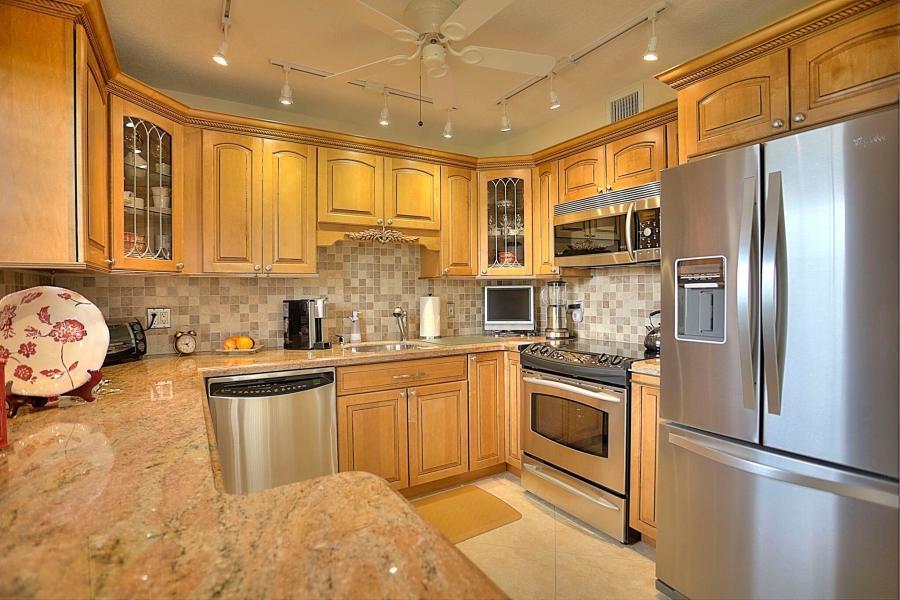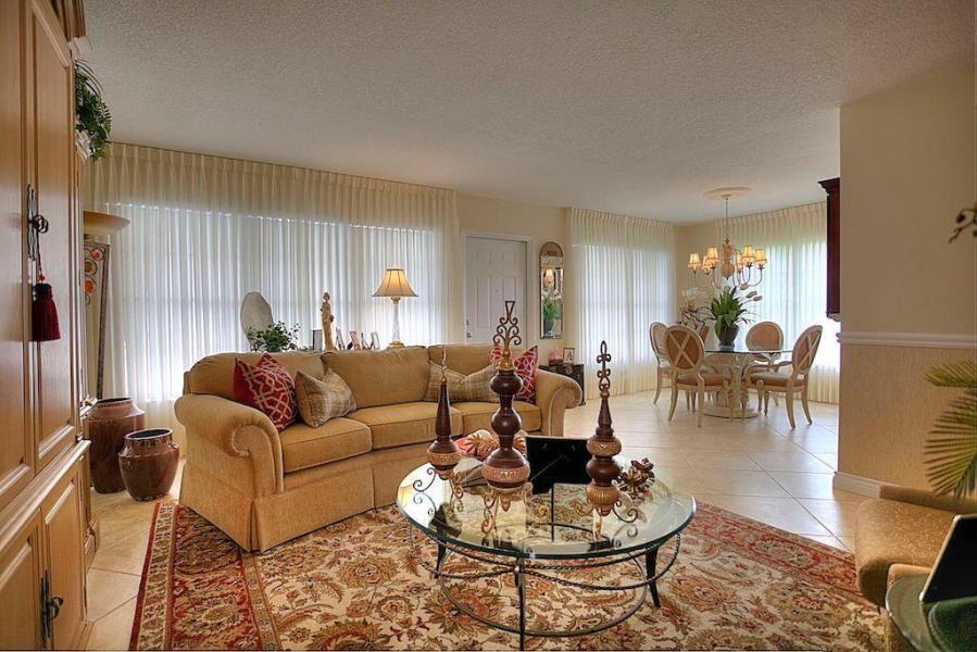 For sale in a 55+ adult retirement community in Century Village - beautiful corner condo on the 4th floor. Absolutely in move-in condition! Enjoy a gourmet kitchen, featuring stainless steel appliances, granite counter tops, all wood custom cabinets, amazing tile floors throughout, two full remodeled bathrooms, 2 magnificent sunny bedrooms. Welcome home! You will enjoy South Florida lifestyle with amenities like a fully equipped fitness center, club house, free transportation, security, close proximity to PBI airport, shopping, beaches, restaurants.
