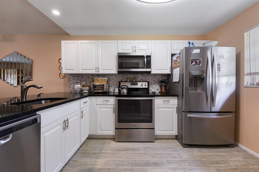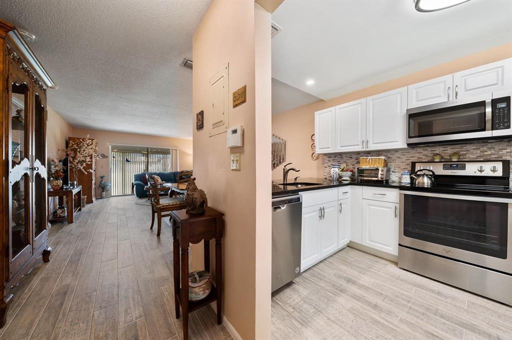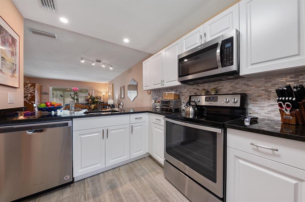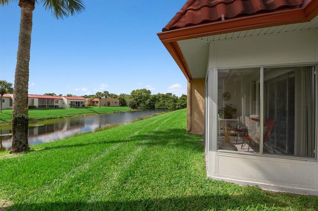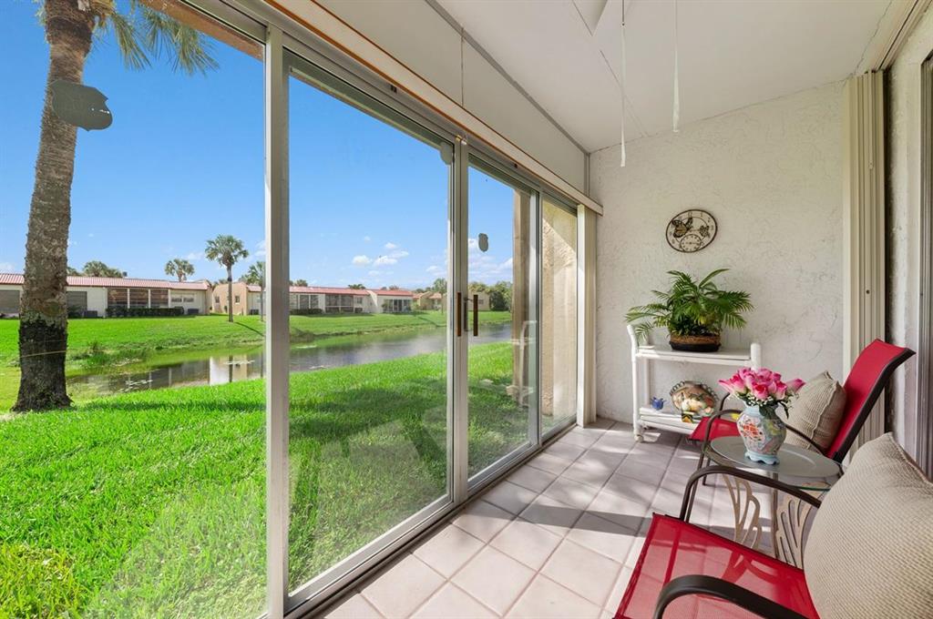All that is Missing from this Totally Updated Immaculate 2/2 Lakefront Villa is a Buyer that is Looking to Move-in & Live the Florida Lifestyle! The Excitement begins the moment you enter & See that the Open Concept of this Residence gives it a feeling of Space, Harmony & a Seamless Flow between Rooms, that is Flawless! And the Entire Home has Stunning New Porcelain Slip Laid Tile Floors! The Screened Entry Leads to a the Foyer that opens to the Totally Updated Kitchen with New Cabinetry with Double Sided Cabinets below the Extra Wide Expansive Pass Through that can be used as a Buffet, that Overlooks the Living-Dining Room Combination! Granite Counter Tops with a Glass Subway Style Tile Back Splash, 1 Year Old Whirlpool Stainless Steel Appliances including a French Refrigerator, Range,