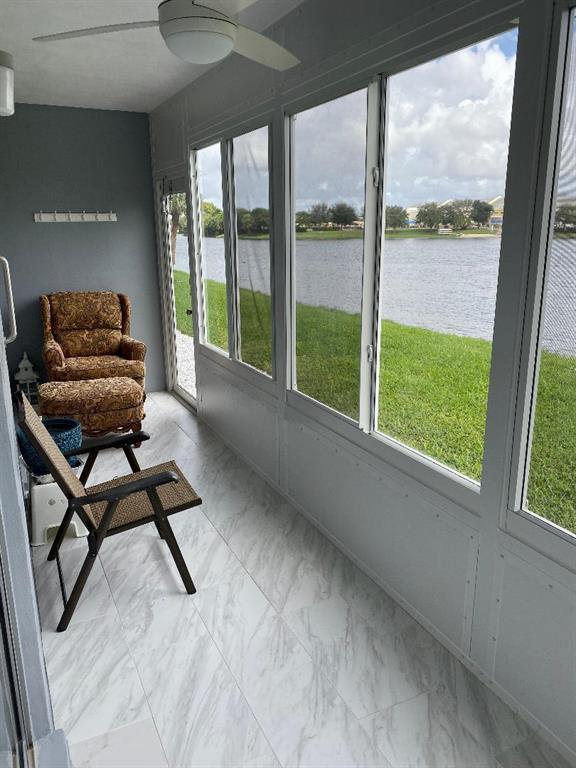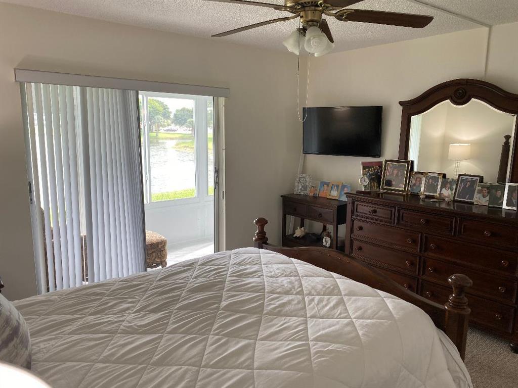 Spectacular and very desirable Ground Floor condo with fabulous water views. This oversized two bedroom, TWO FULL NEW BATHS, lake side beauty has it ALL. Brand NEW HURRICANE IMPACT WINDOWS, New window blinds, Brand NEW Patio with New Sliding Windows, new carpets, updated furniture, some new appliances. Walk to pool, and across from the Bus stop is very convenient. 55+ Community/HOA approval required . No renting and no pets. Must meet CV financial guidelines. PROOF of funds and earnings to be verified.