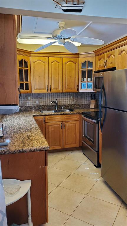 55 and older living at its finest! This fully furnished 2bdr 1 1/2 bath corner unit features impact windows, central air-conditioning, granite countertops and stainless-steel appliances. Bring your toothbrush and clothes, because that's all you will need, this beautiful unit is being sold with all the furniture and linens. Don't feel like taking the stairs? Then take the buildings lift instead. Enjoy all Century Village has to offer with plenty of amenities which include, fitness center, multiple pools, including one indoors, party room, library and 1200 seat theater.