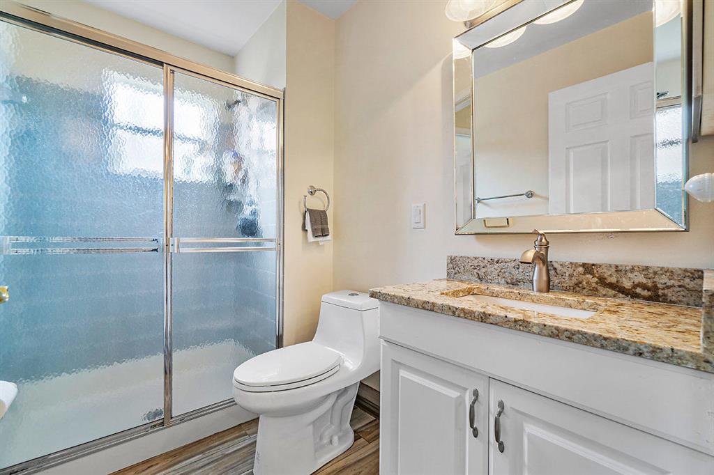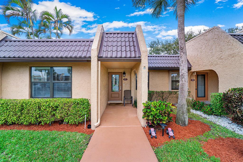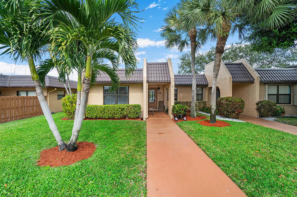 All renovated, Corner Villa walking distance to clubhs, pool & temple. Water view from patio. Full size W/D. Walk-in shower in guest bathroom. New kitchen features granite counters. All bathroom are renovated Ideal 55+ active community. Courtesy Bus service 3 days a week to grocery, malls, shops, library etc. On-site manager & Social Director. Shows, trips, clubs, billiards, Gym, sauna, movies, etc. Pet friendly